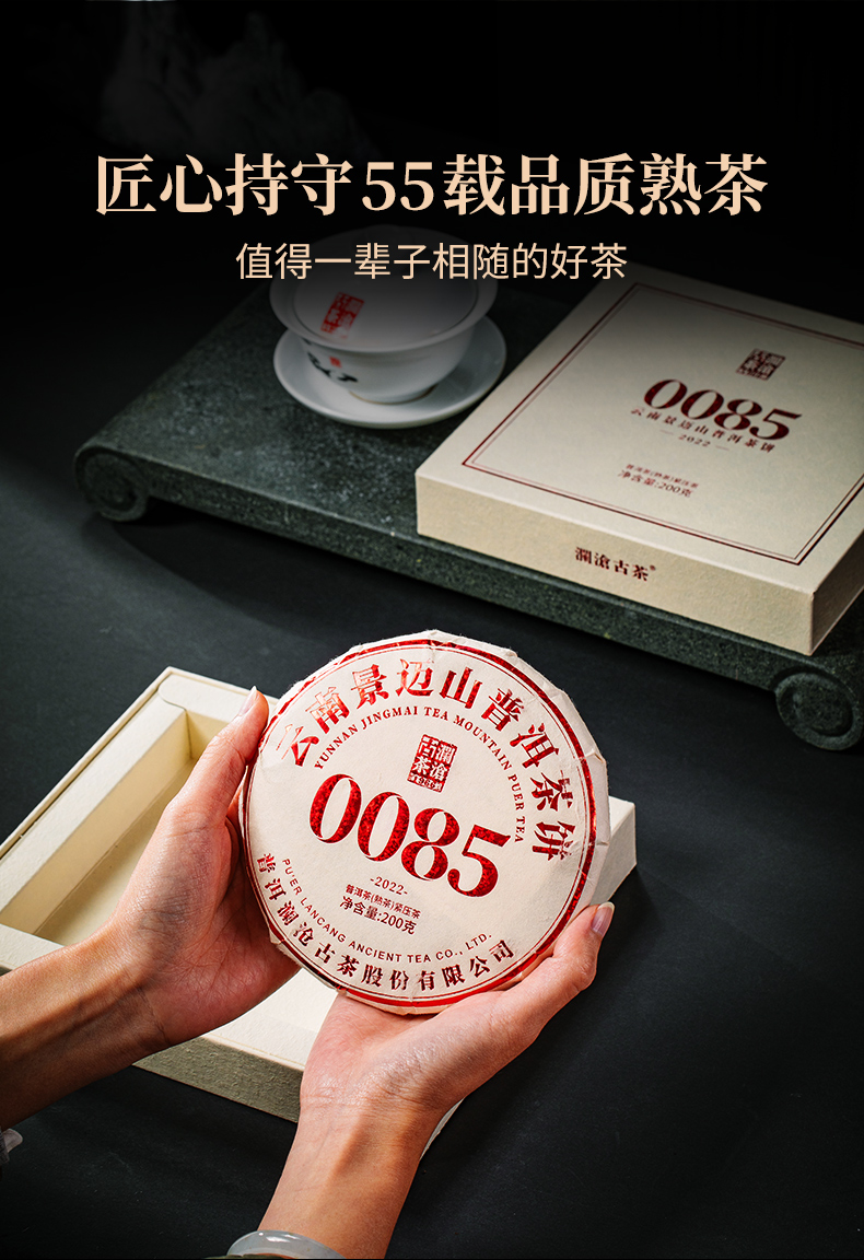 澜沧古茶2022年景迈0085小饼普洱茶熟茶饼茶200g/片