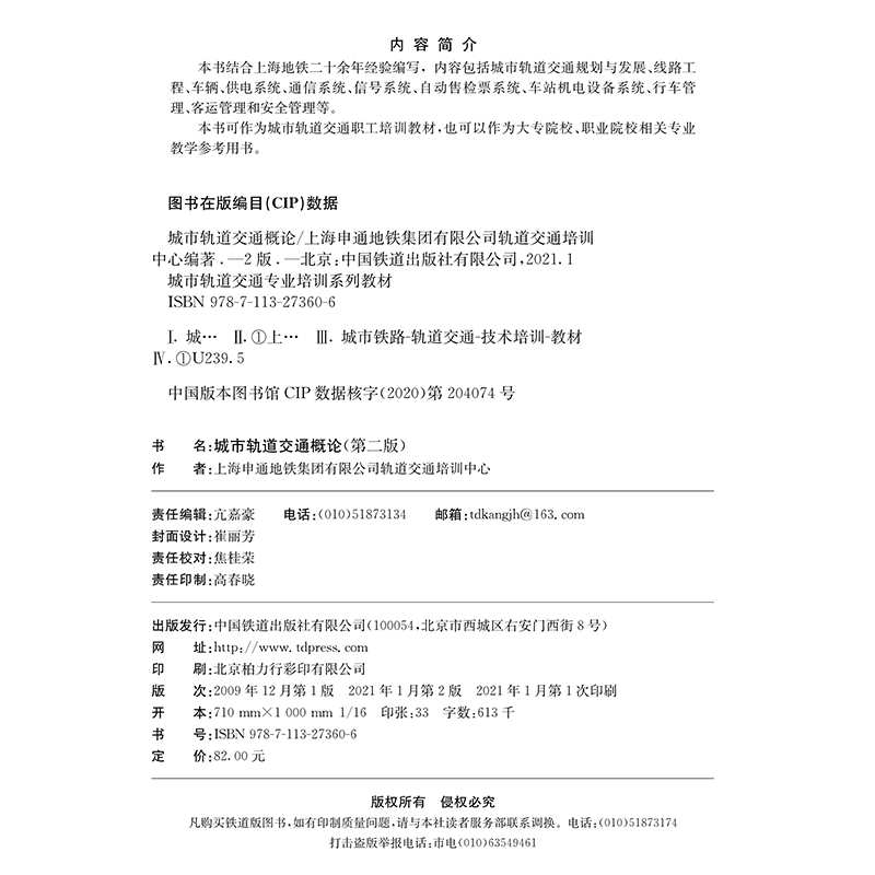本书结合上海地铁二十余年经验,在第一版基础上进行了修订,删除了部分过时的内容,更新了轨道交通的各项数据,增加了桥梁维护方式、路网车型、UTO无人值守列车运行等内容,使得专业新技术、新工艺、新理念都得到及时的反映和概括。全书主要内容包括城市轨道交通规划与发展、城市轨道交通线路工程、城市轨道交通车辆、城市轨道交通供电系统、城市轨道交通通信系统、城市轨道交通信号系统、城市轨道自动售检票系统、城市轨道交通车站机电设备系统、城市轨道交通行车管理、城市轨道客运管理和城市轨道安全管理等。