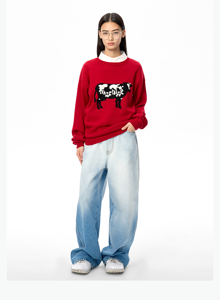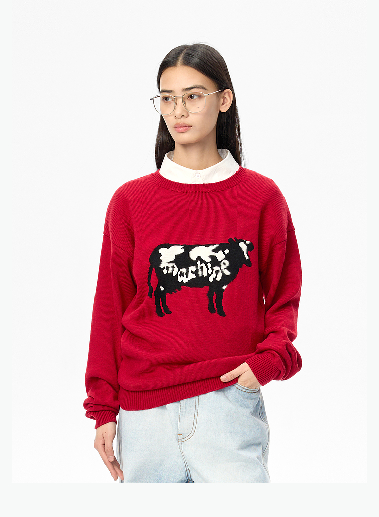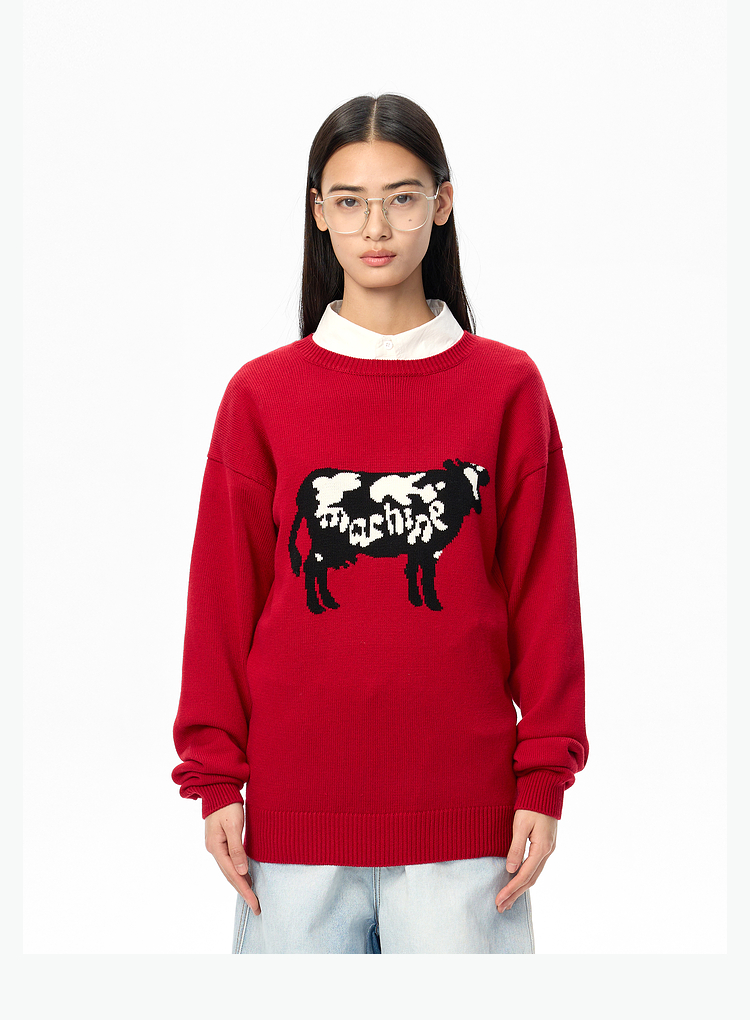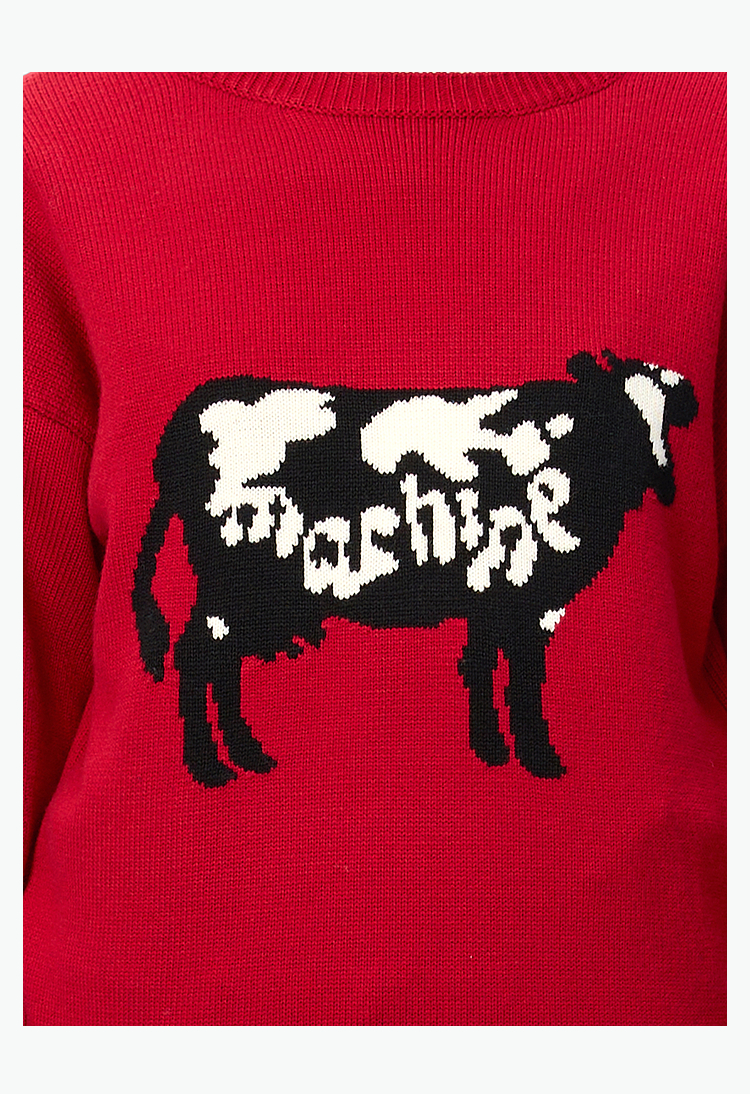 FMACM/ZZS2403/奶牛“Machine”手工提花圆针织衫