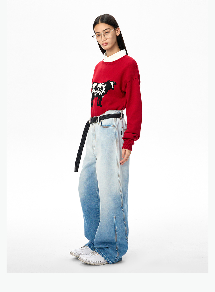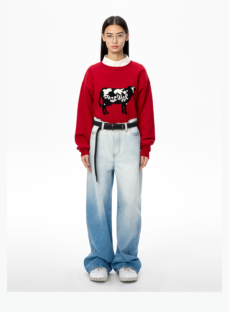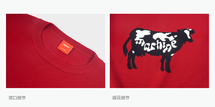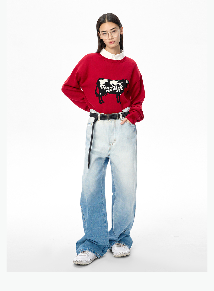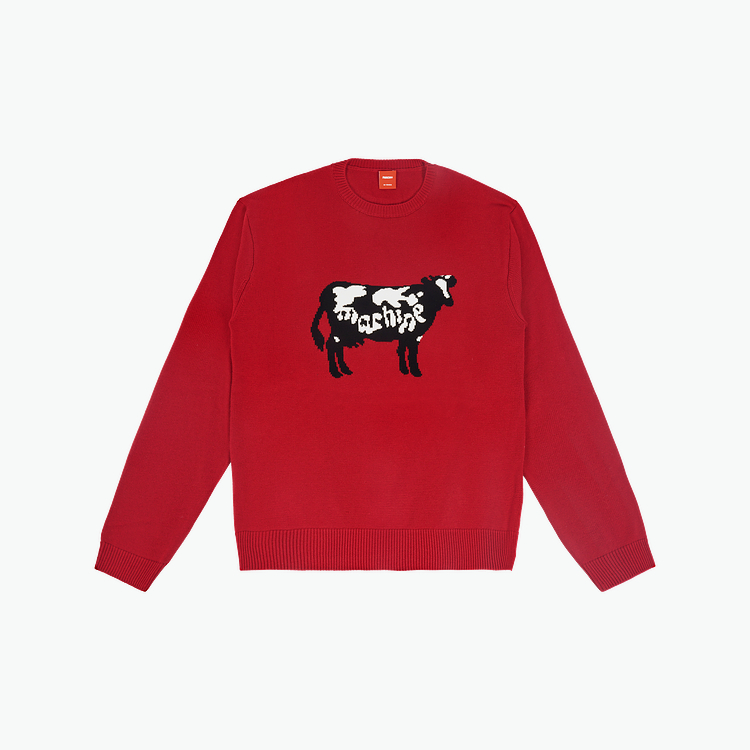 FMACM/ZZS2403/奶牛“Machine”手工提花圆针织衫
