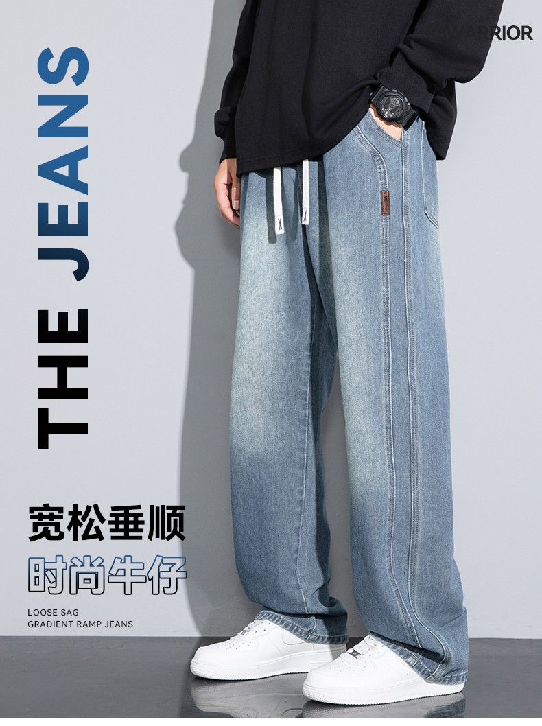 回力牛仔裤男春秋季2025新款直筒垂感休闲长裤宽松阔腿裤子男