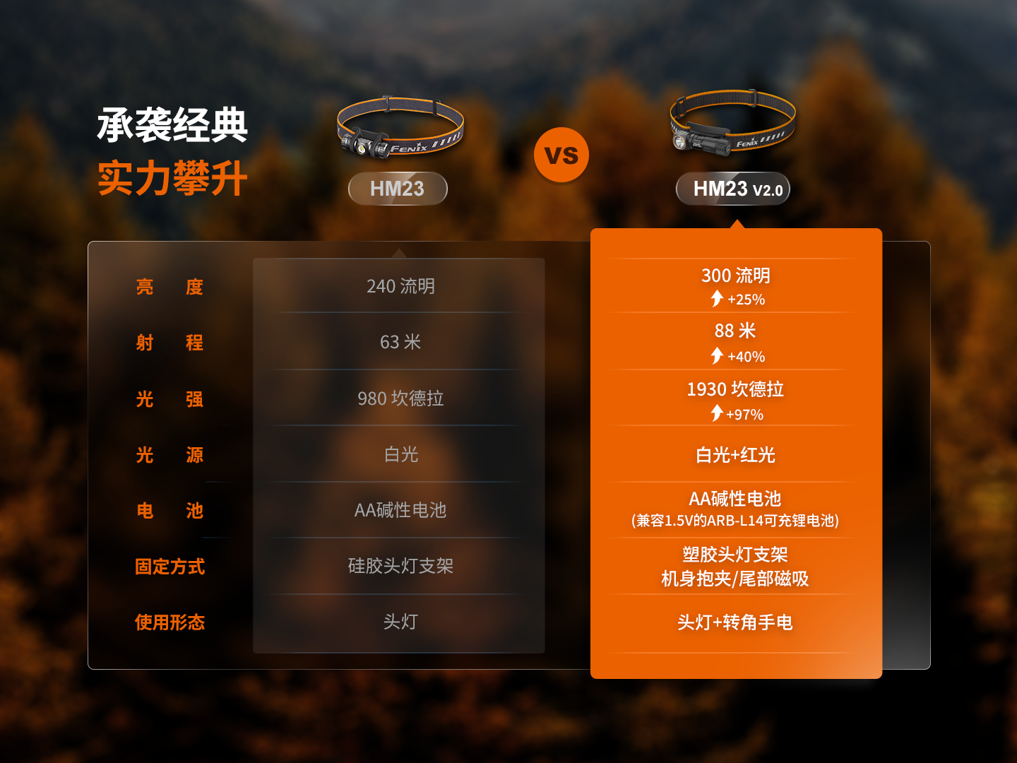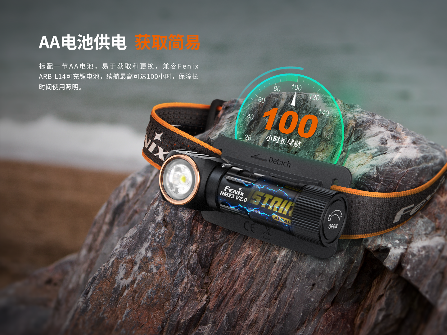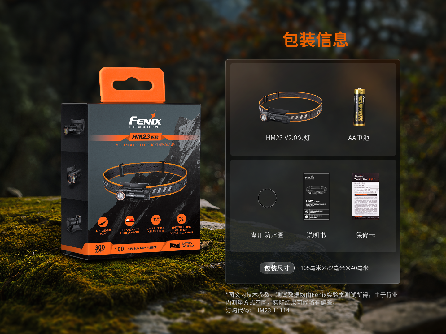 【补贴80!199到手!限今天】Fenix HM23 V2.0户外头灯强光越野跑步红光白光AA头灯轻量型防水兼容14500 1.5v