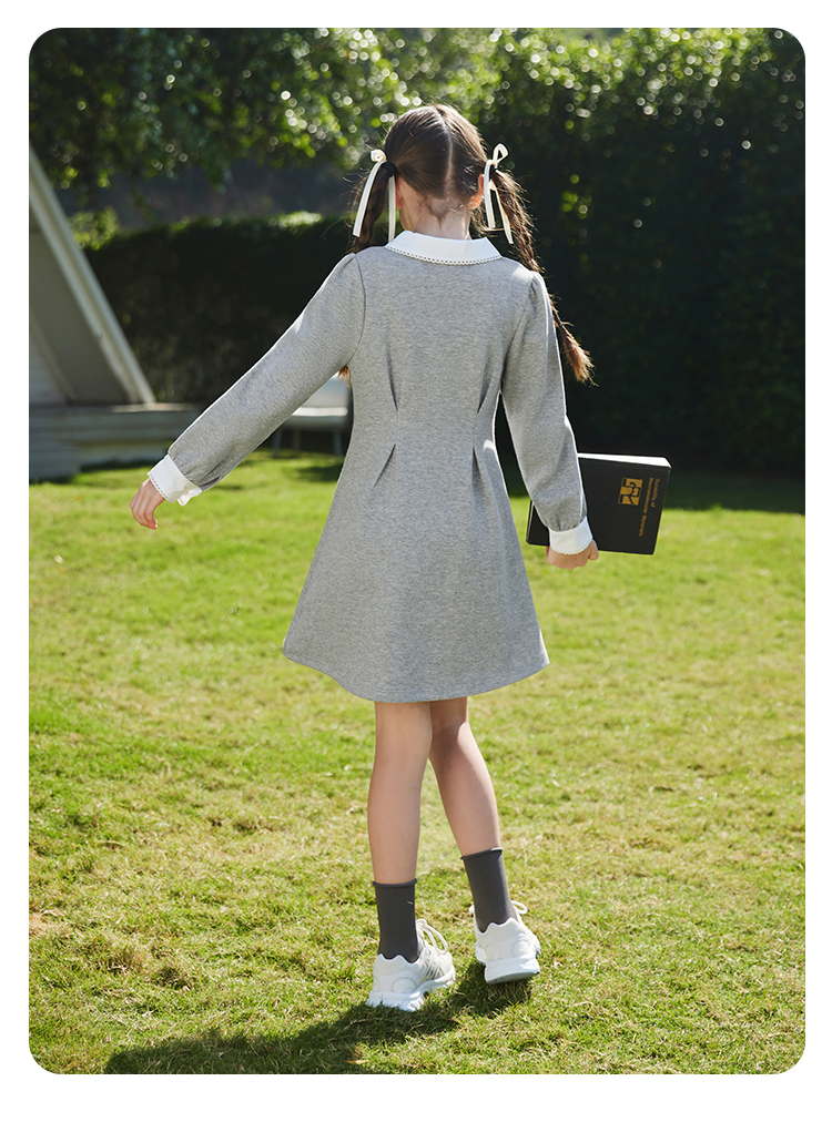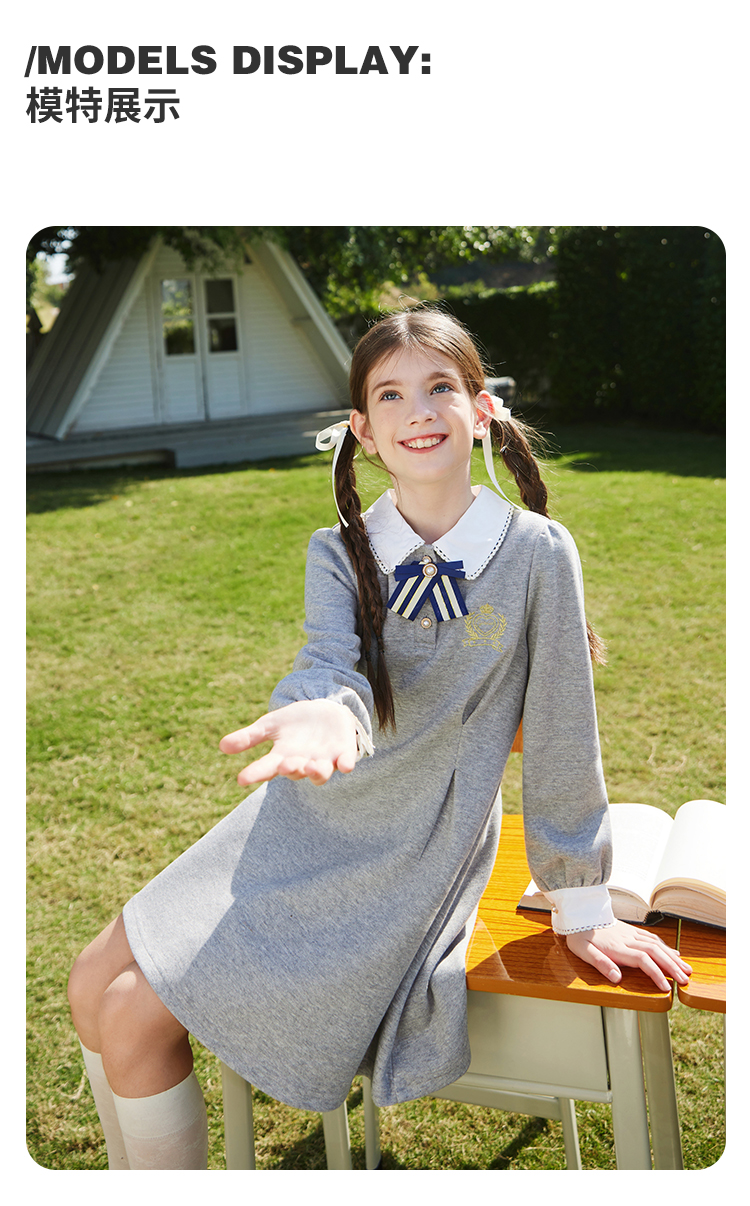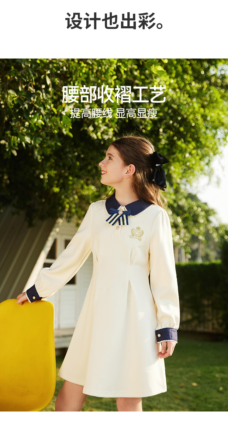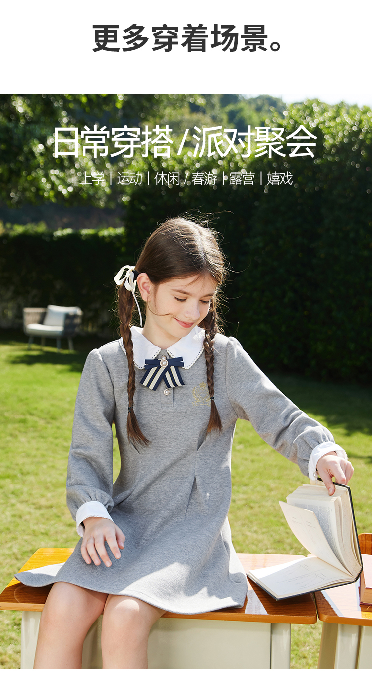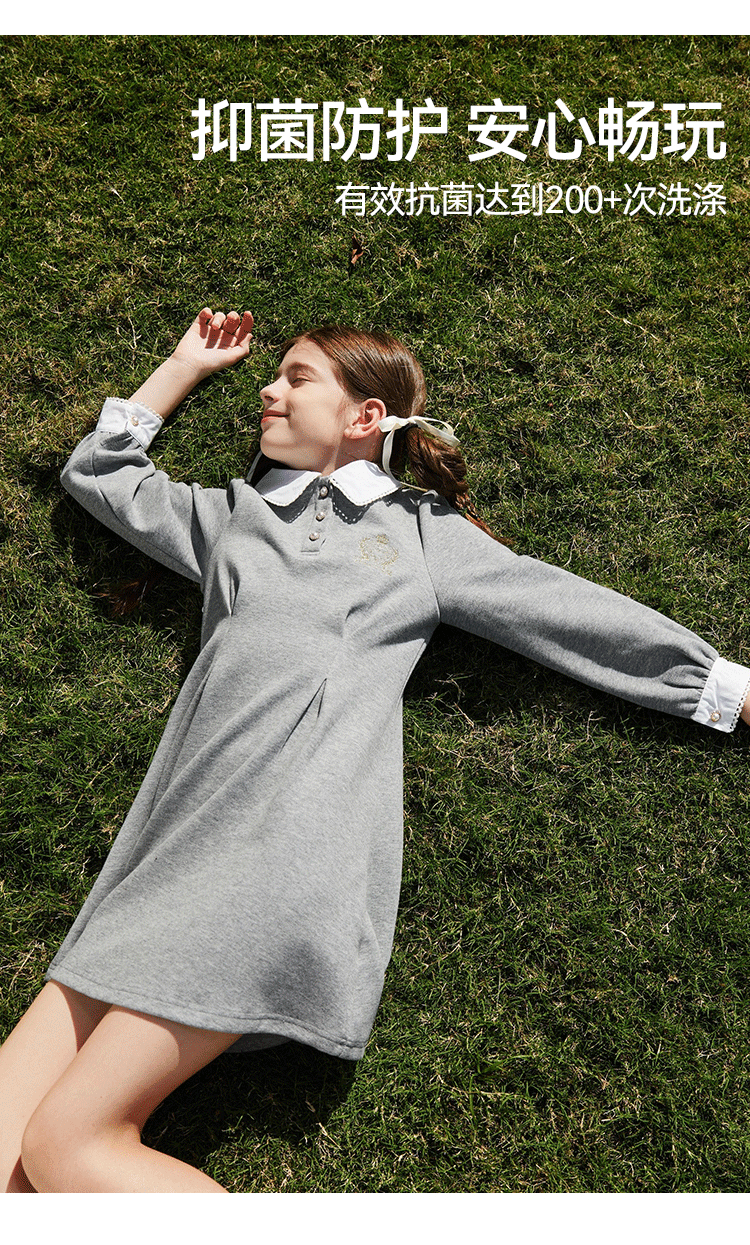 【英氏】【5A抑菌】【130-170】女童春秋款洋气学院风连衣裙
