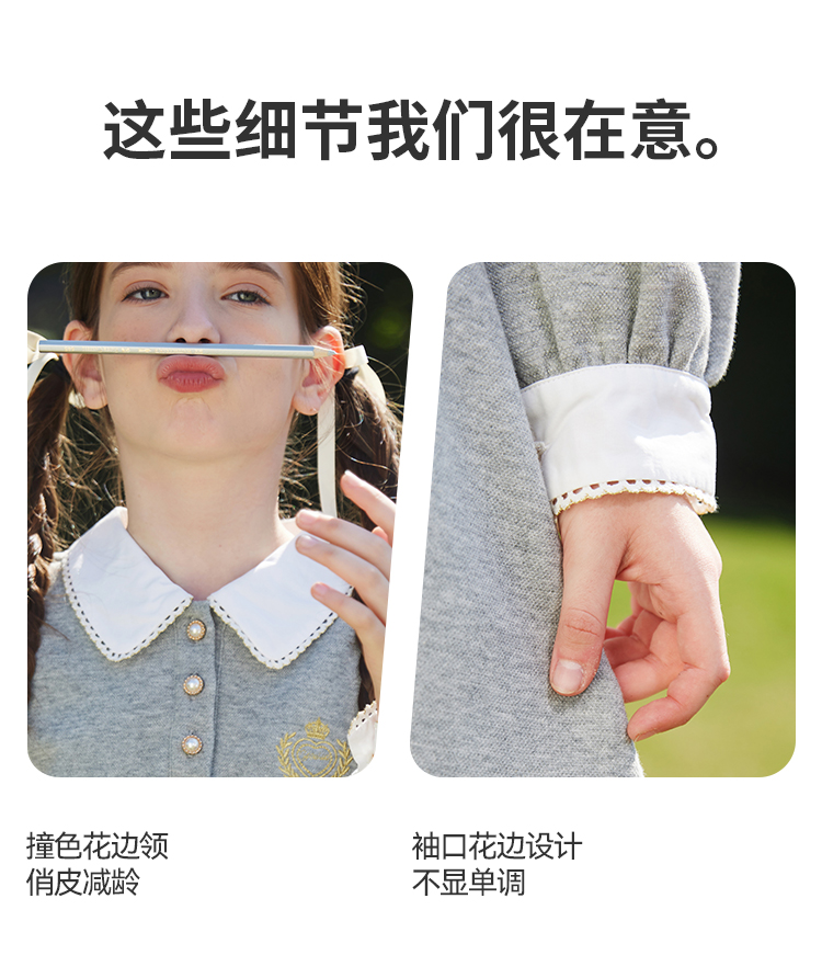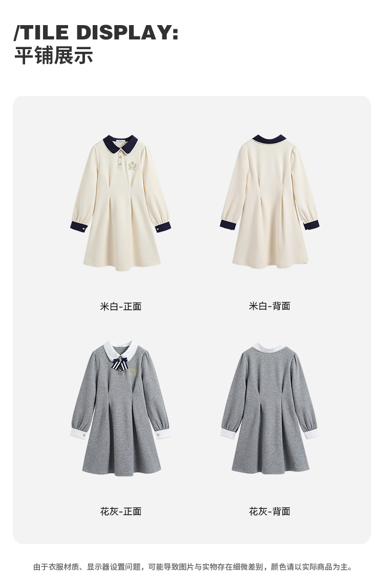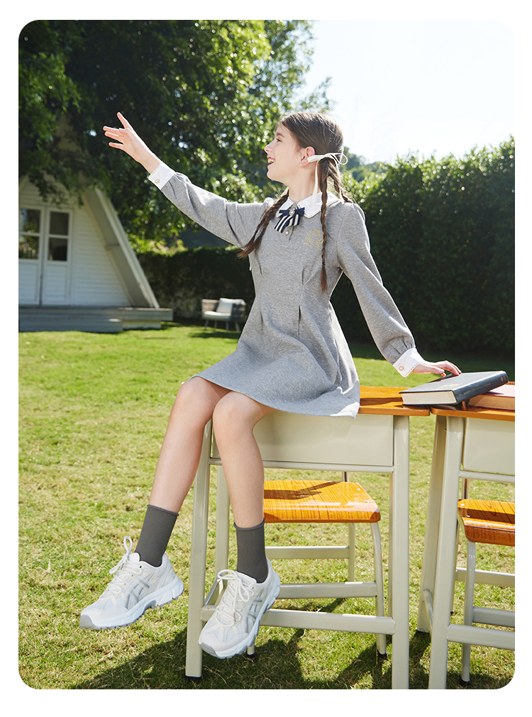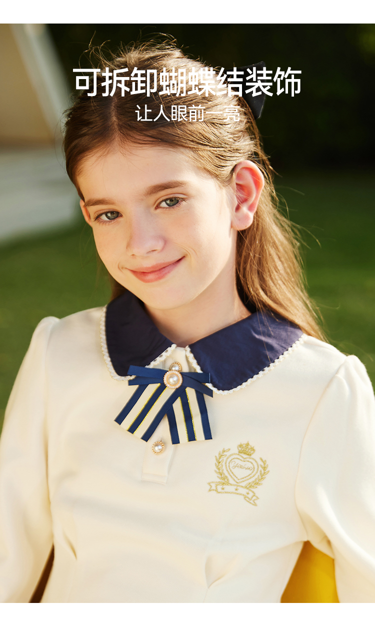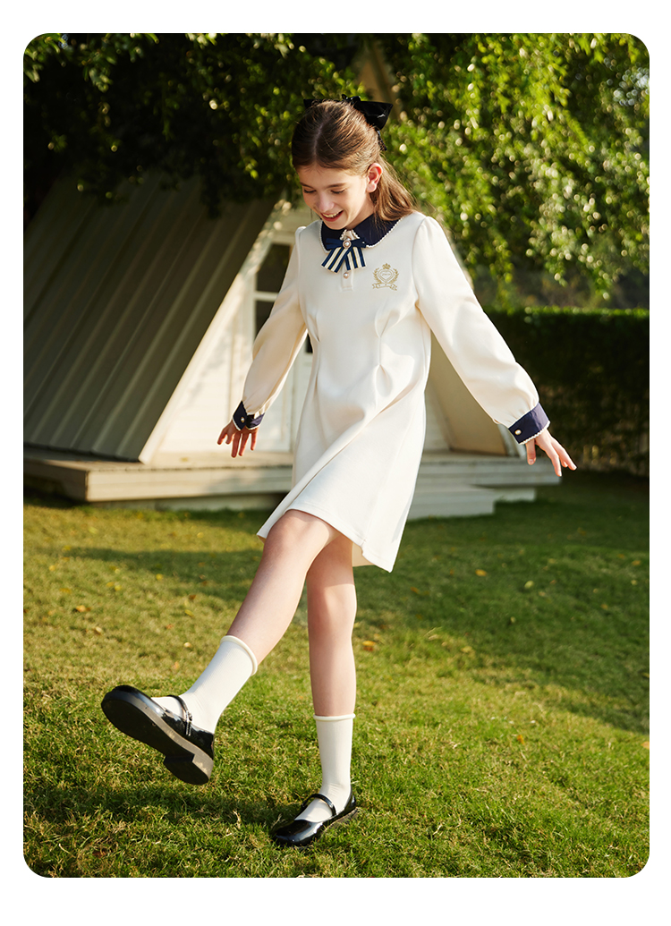 【英氏】【5A抑菌】【130-170】女童春秋款洋气学院风连衣裙