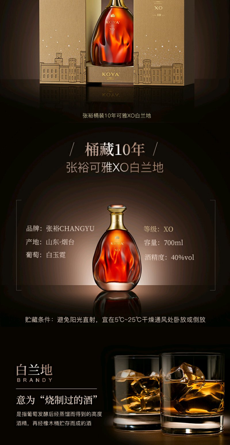 张裕可雅桶藏10年XO白兰地700ml