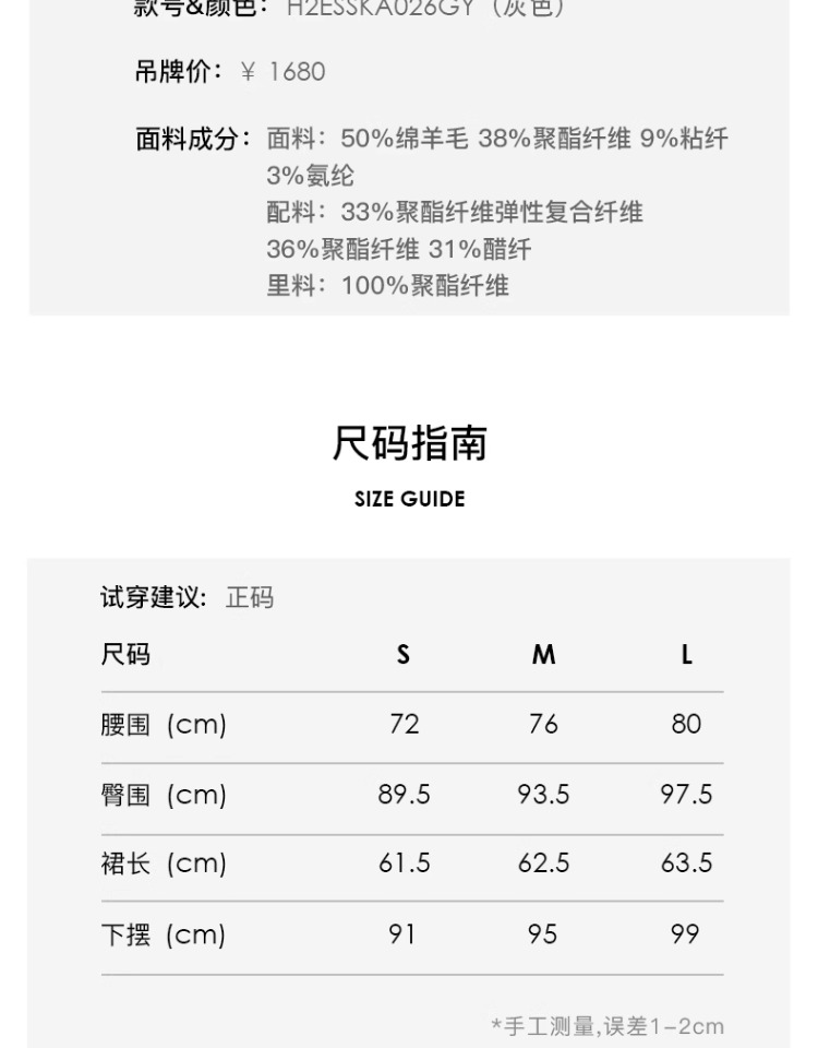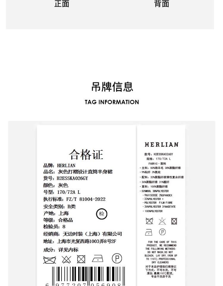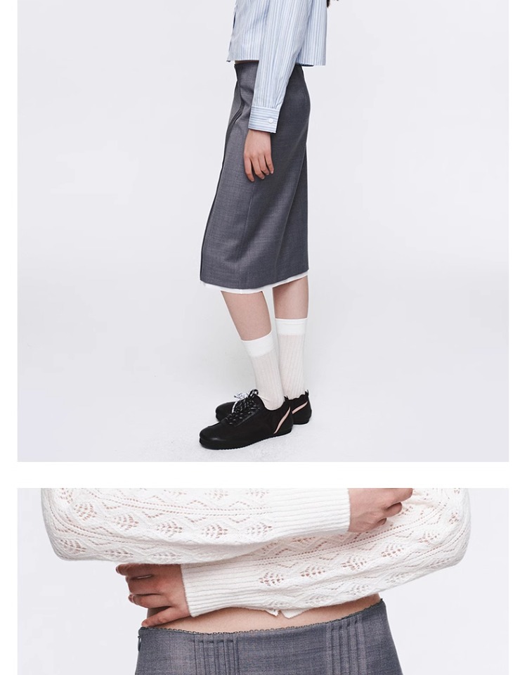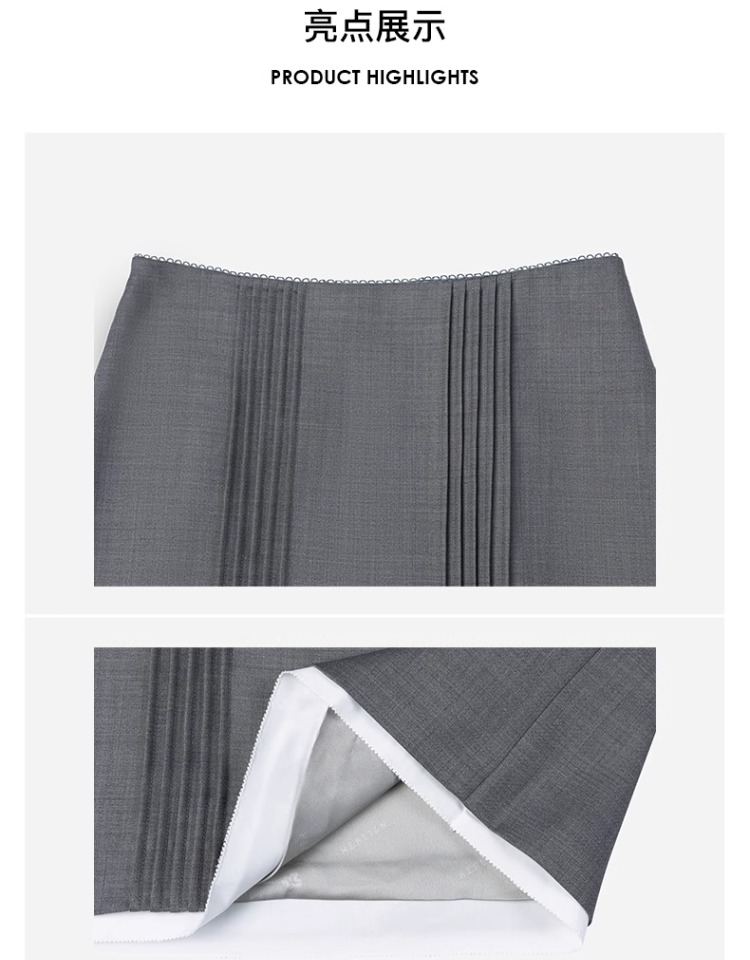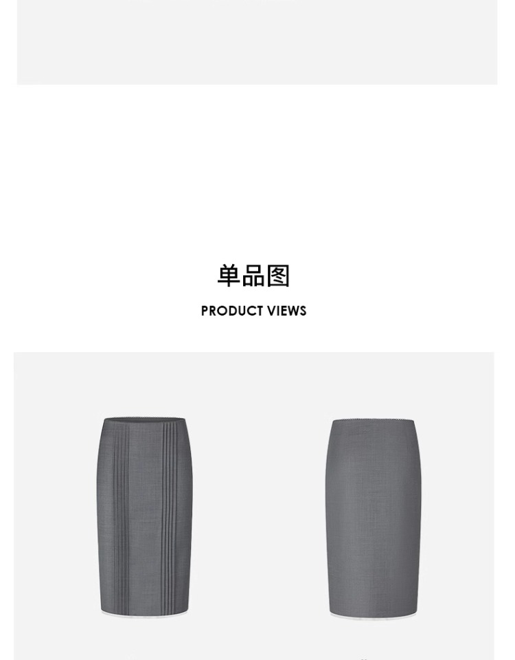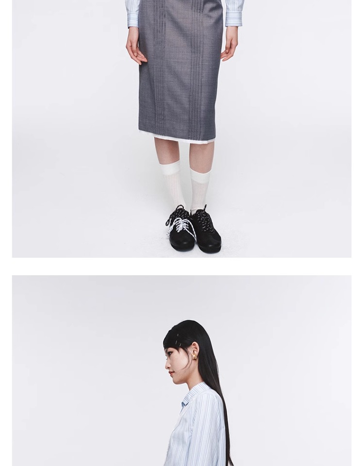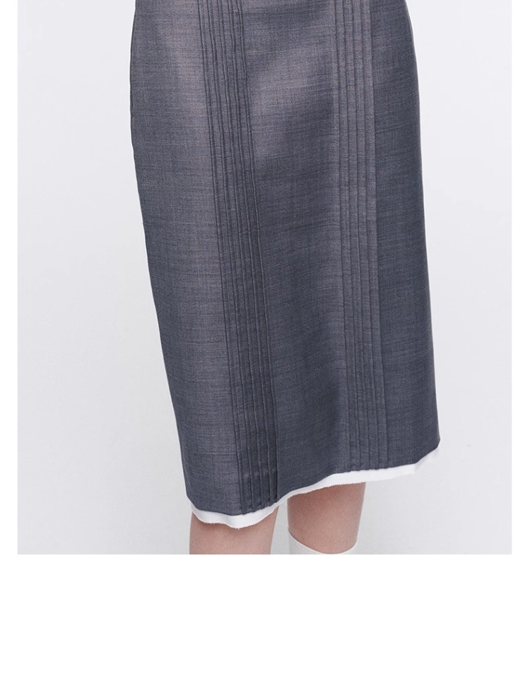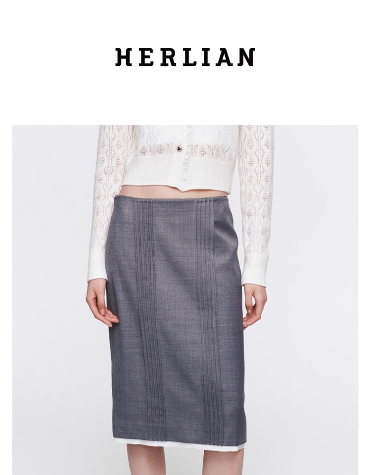 HERLIAN 2025年春季女士灰色打褶设计直筒半身裙