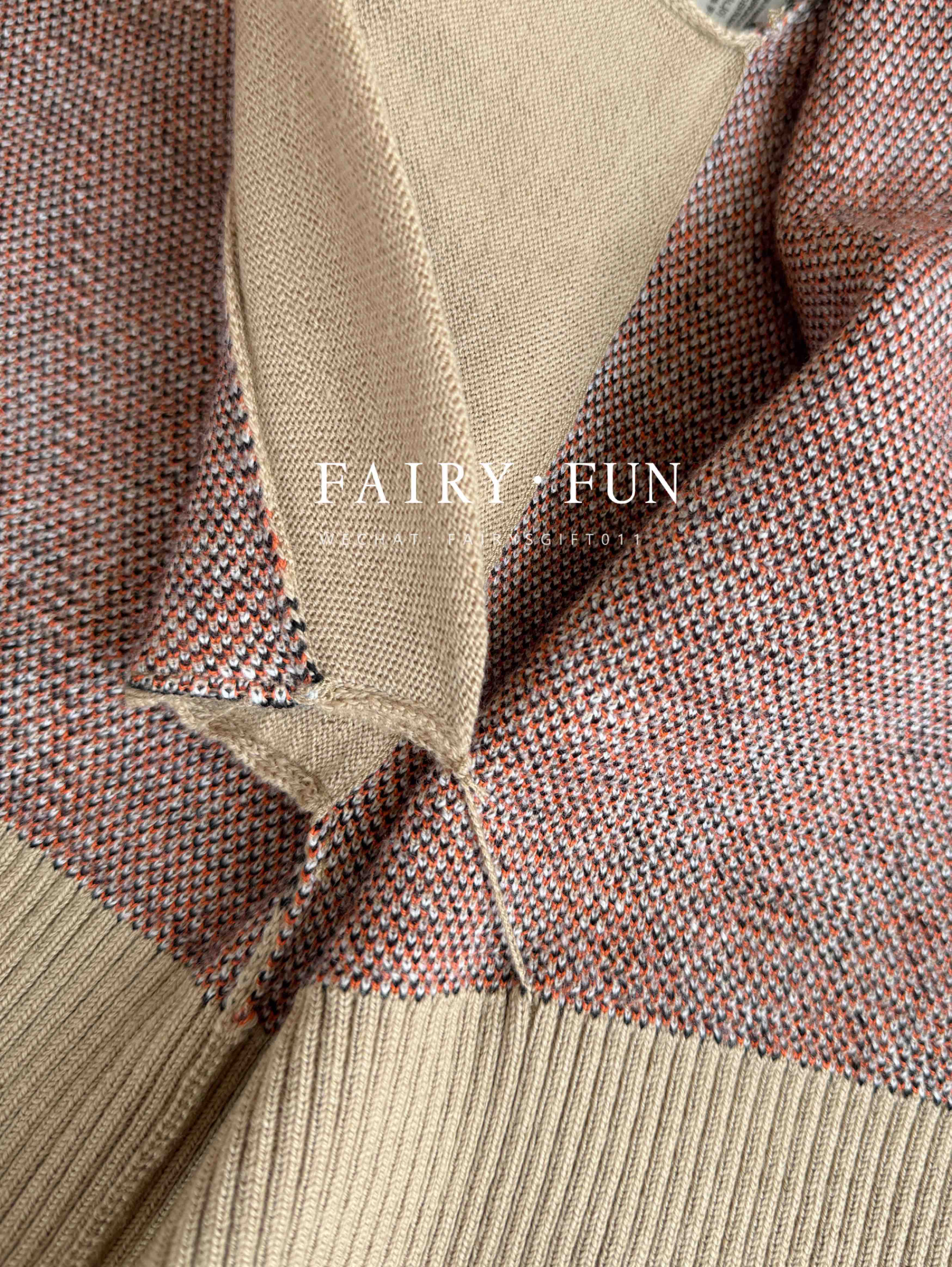 DR-S 粉灰条纹翻领针织衫