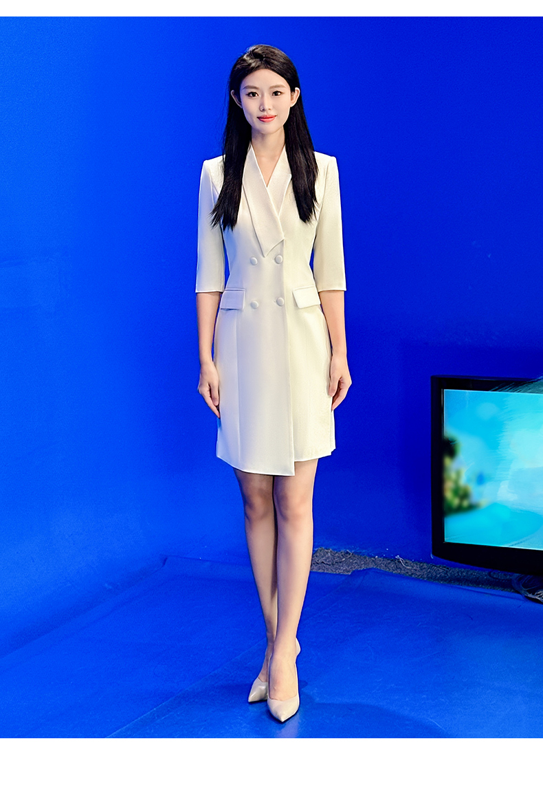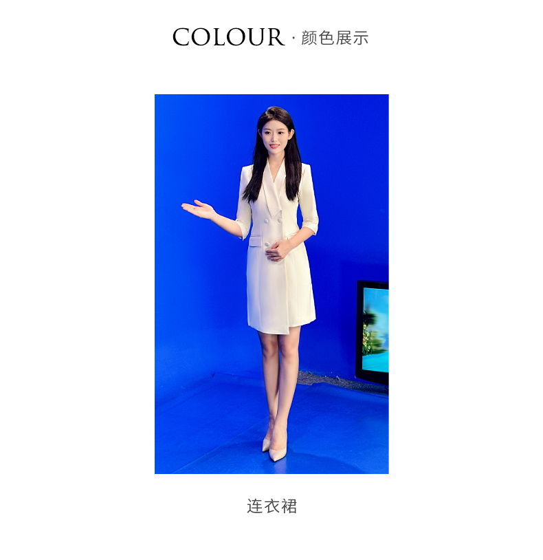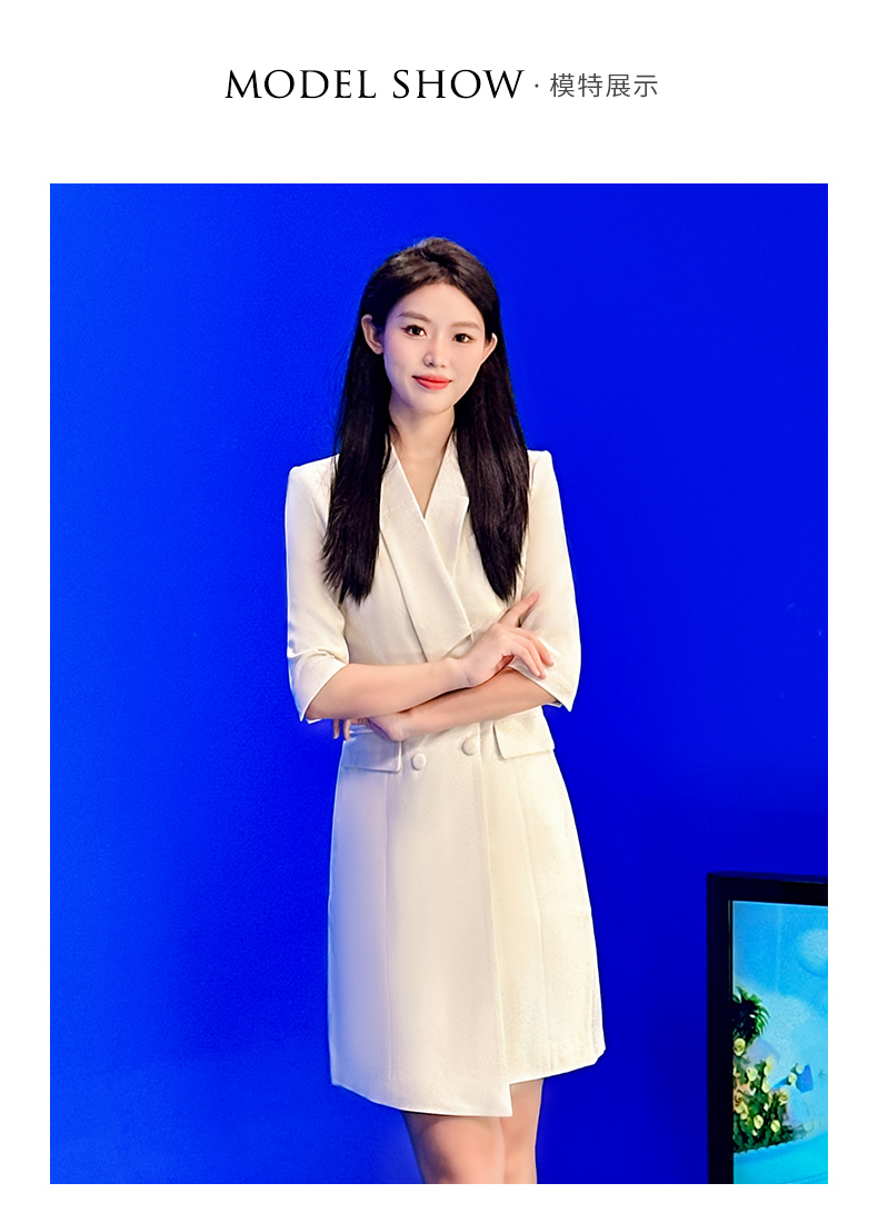 IWY/七分袖演讲比赛服装女春夏季面试播音主持人正装西装连衣裙Q14207