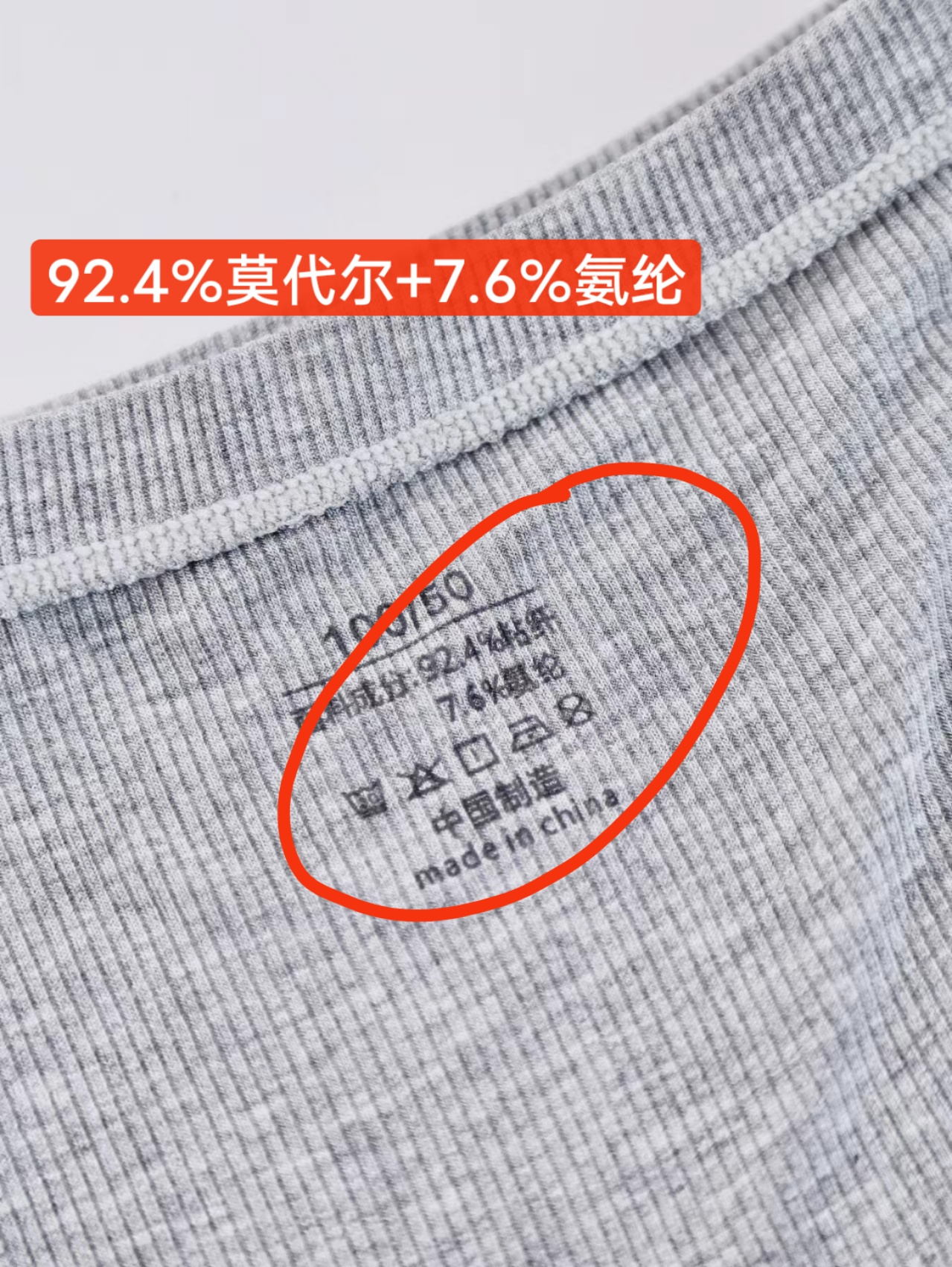 面料:92.4%粘纤(莫代尔)+7.6%氨纶