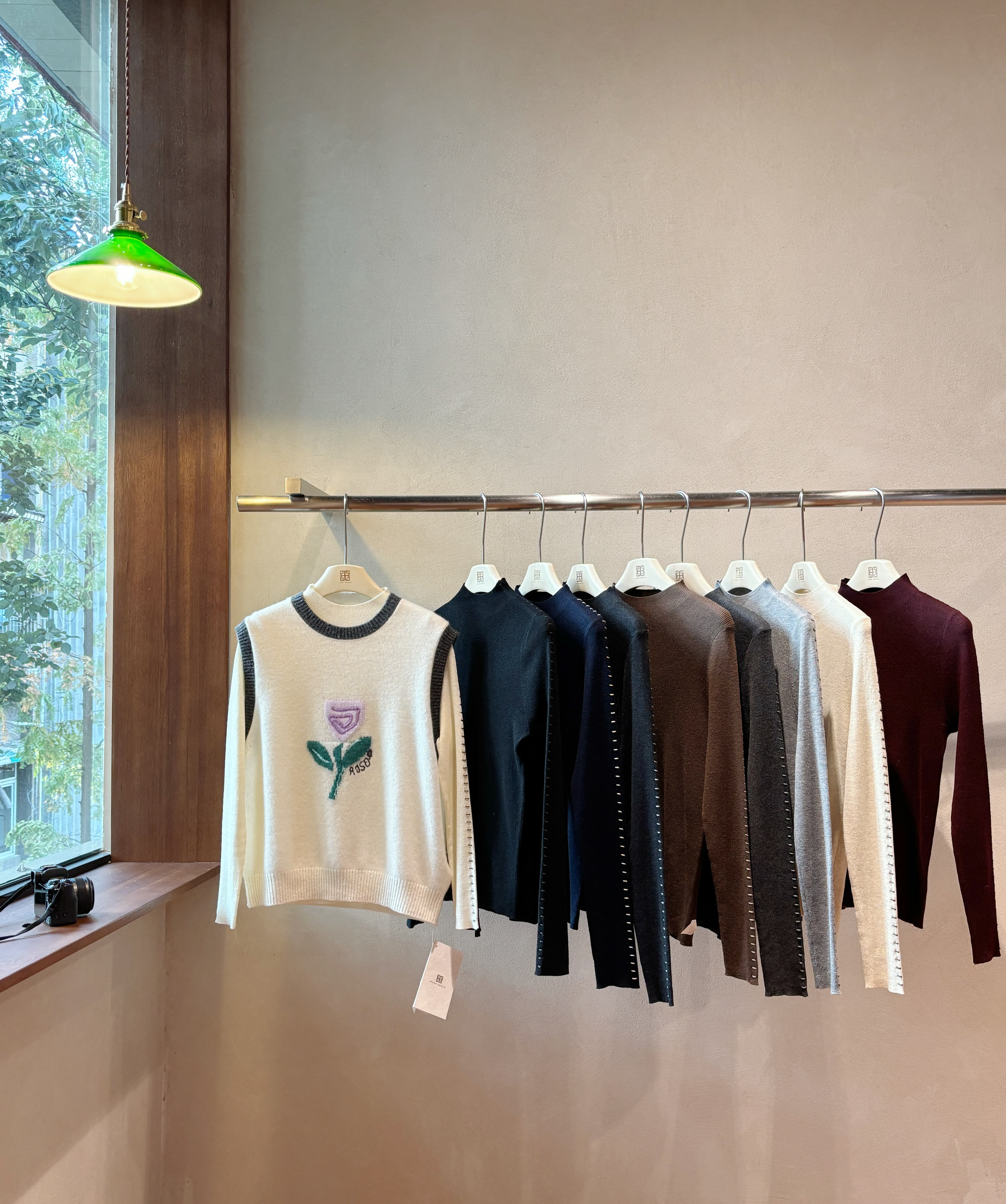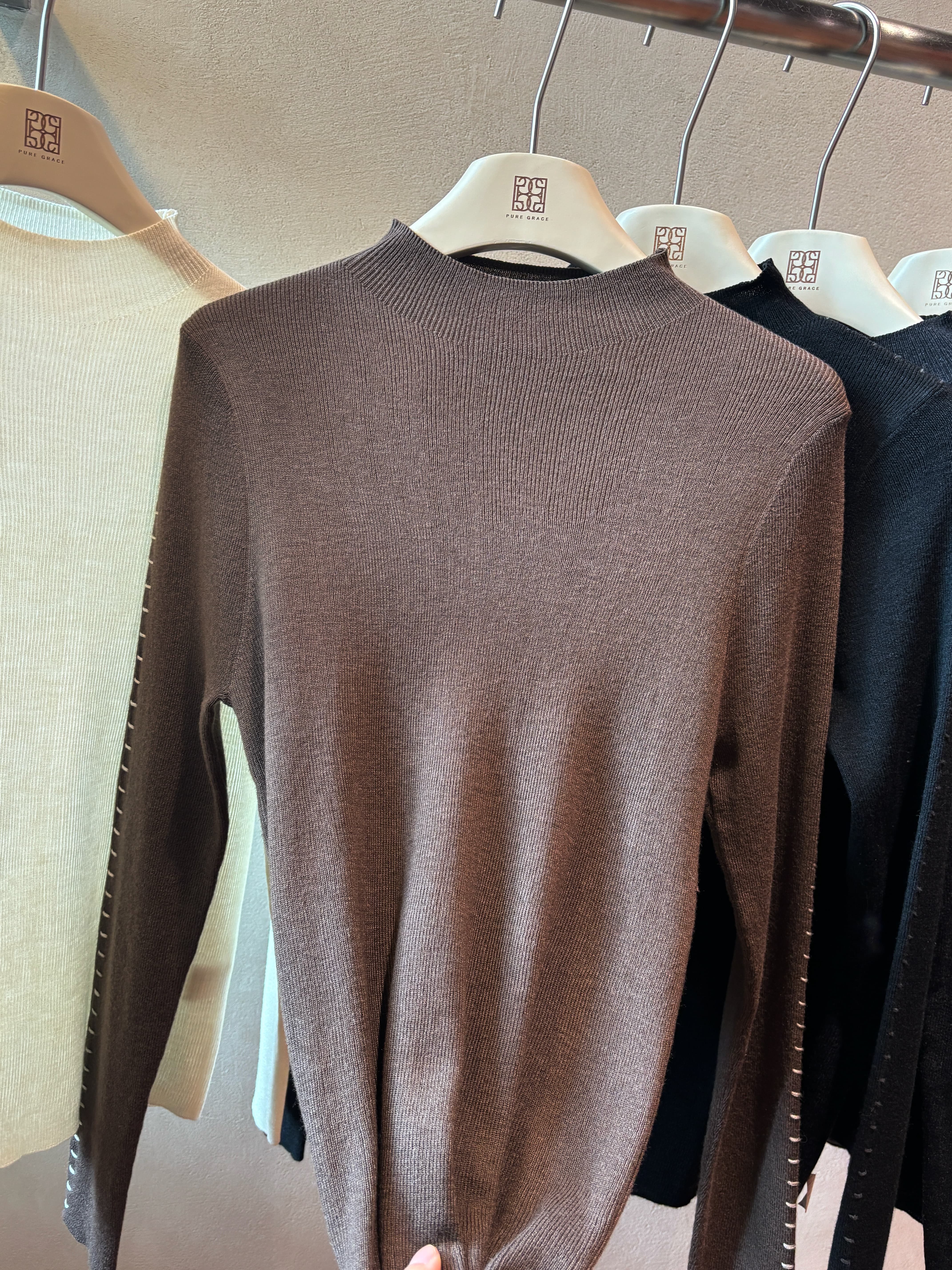PIANAI冷小姐# 肩部嵌花羊毛半高领打底毛衣