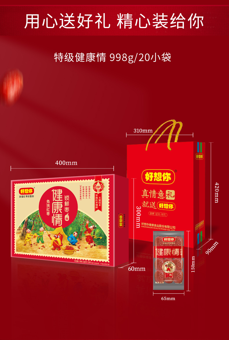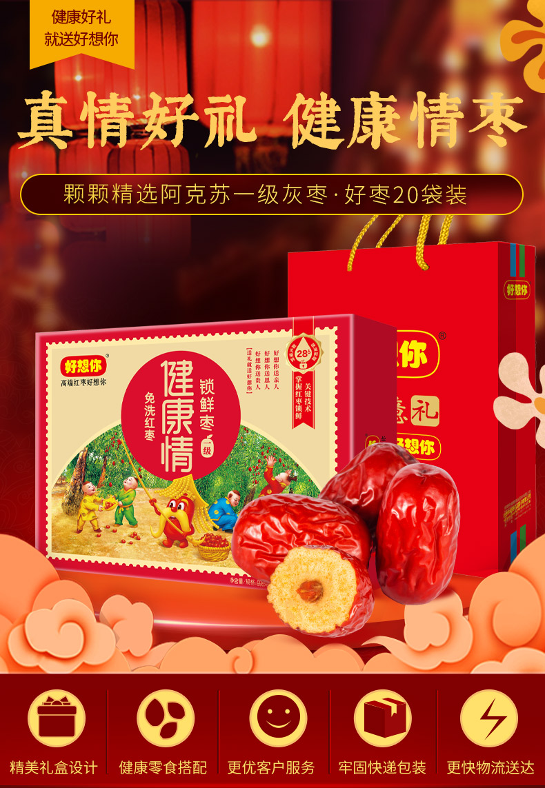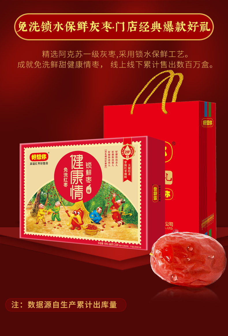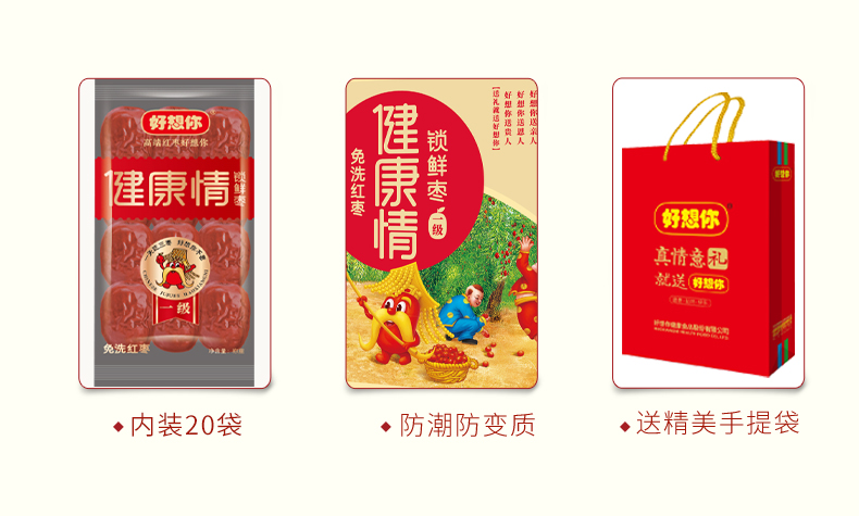 【一级红枣】好想你 一级健康情锁鲜枣 998g