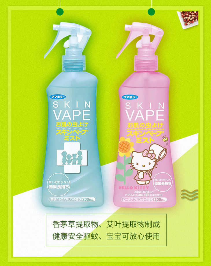 【保税】日本vape 驱蚊粉水绿水宝宝未来驱蚊喷雾液防蚊止痒粉水蓝儿童孕妇婴儿花露水 原装进口