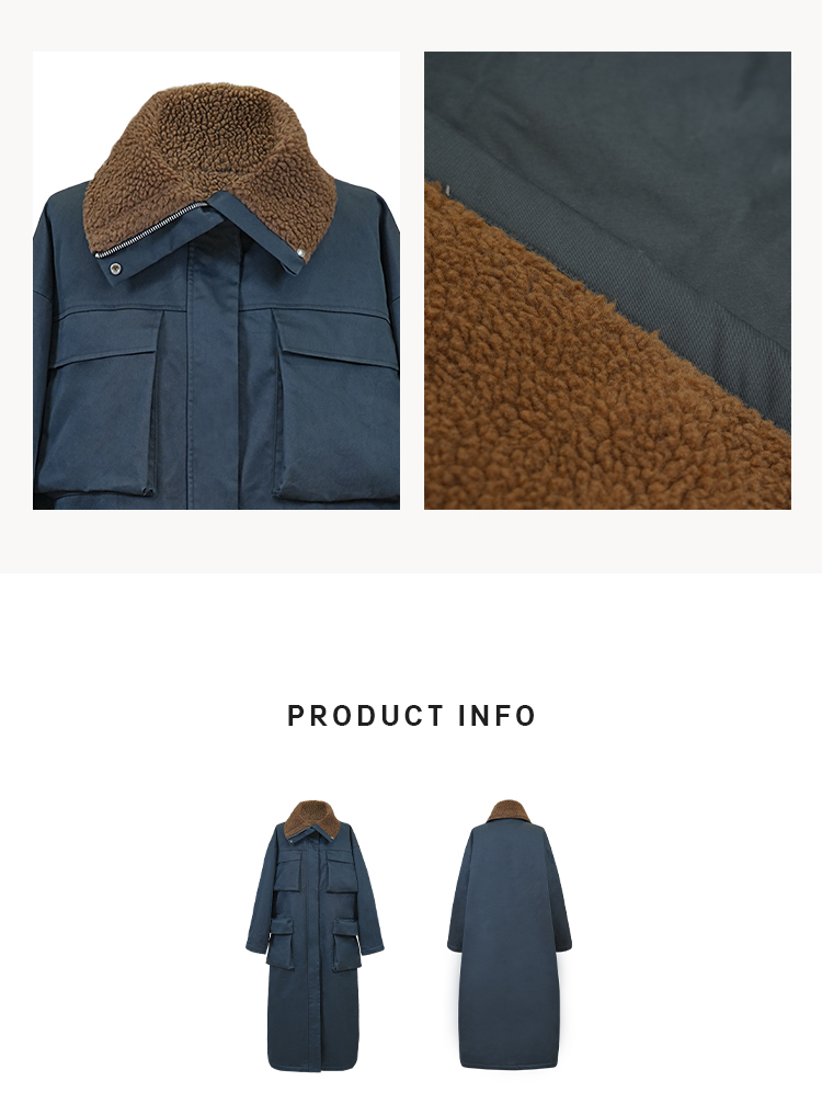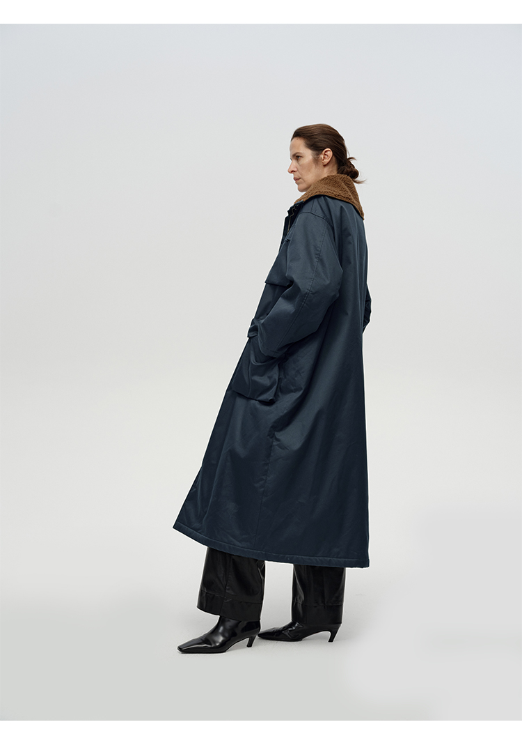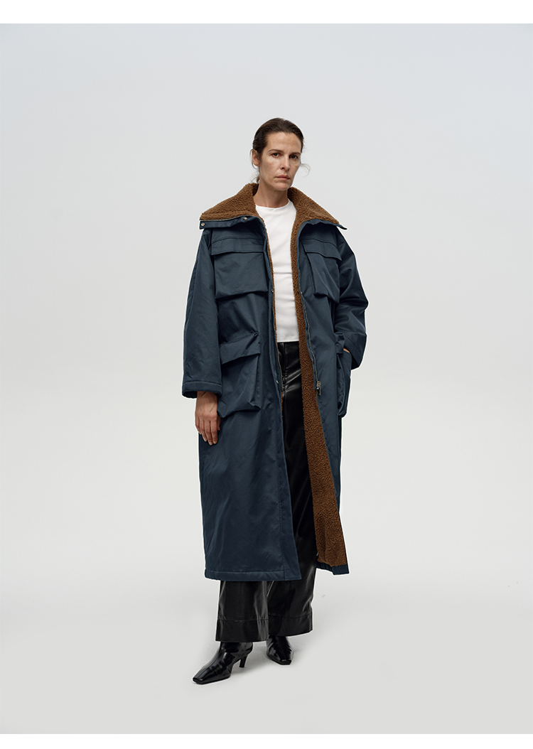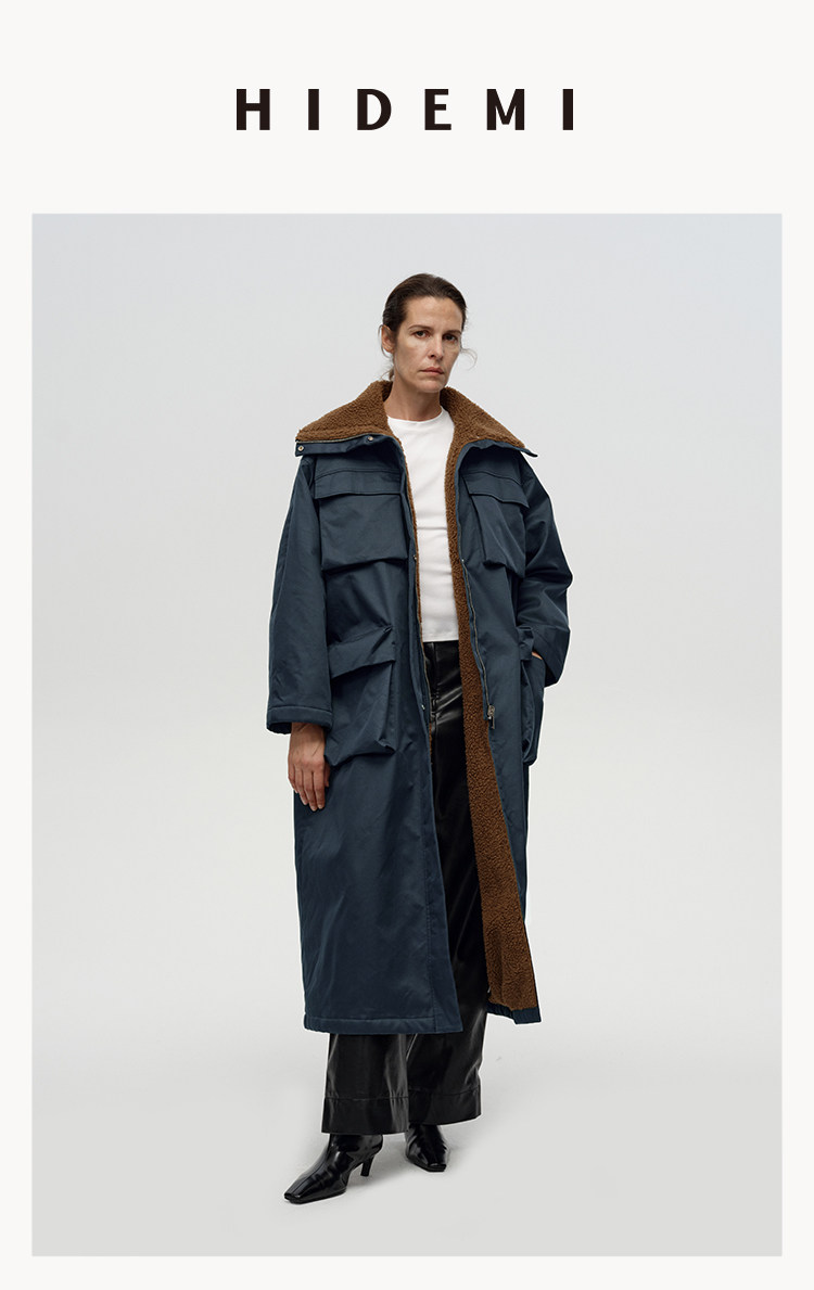 HIDEMI 立体大口袋工装设计感毛绒内胆加厚款拉链式长款大衣外套