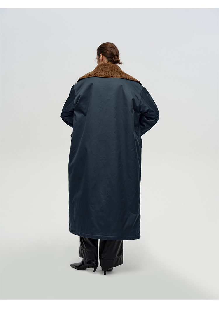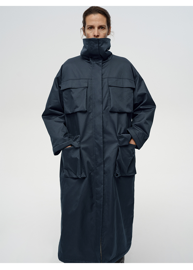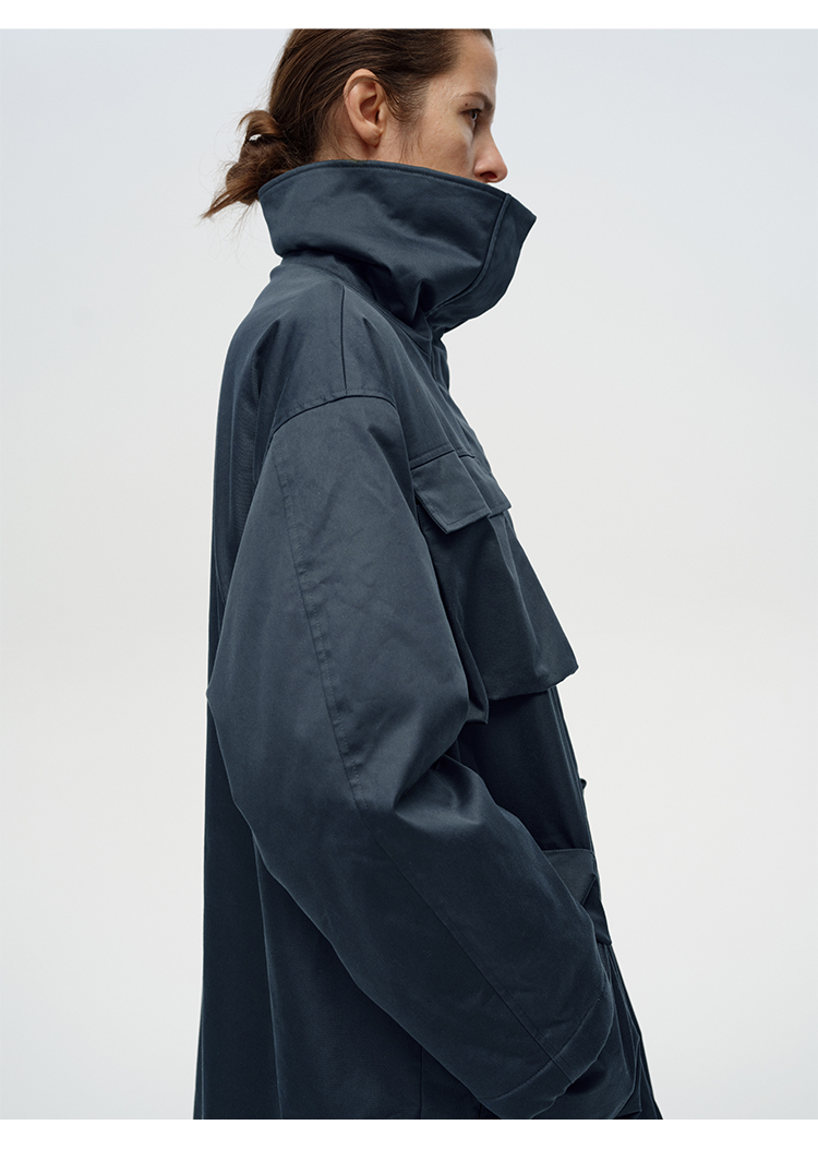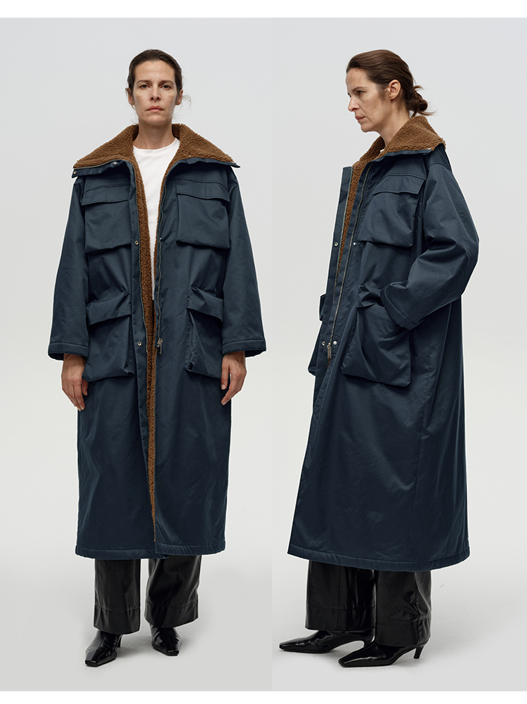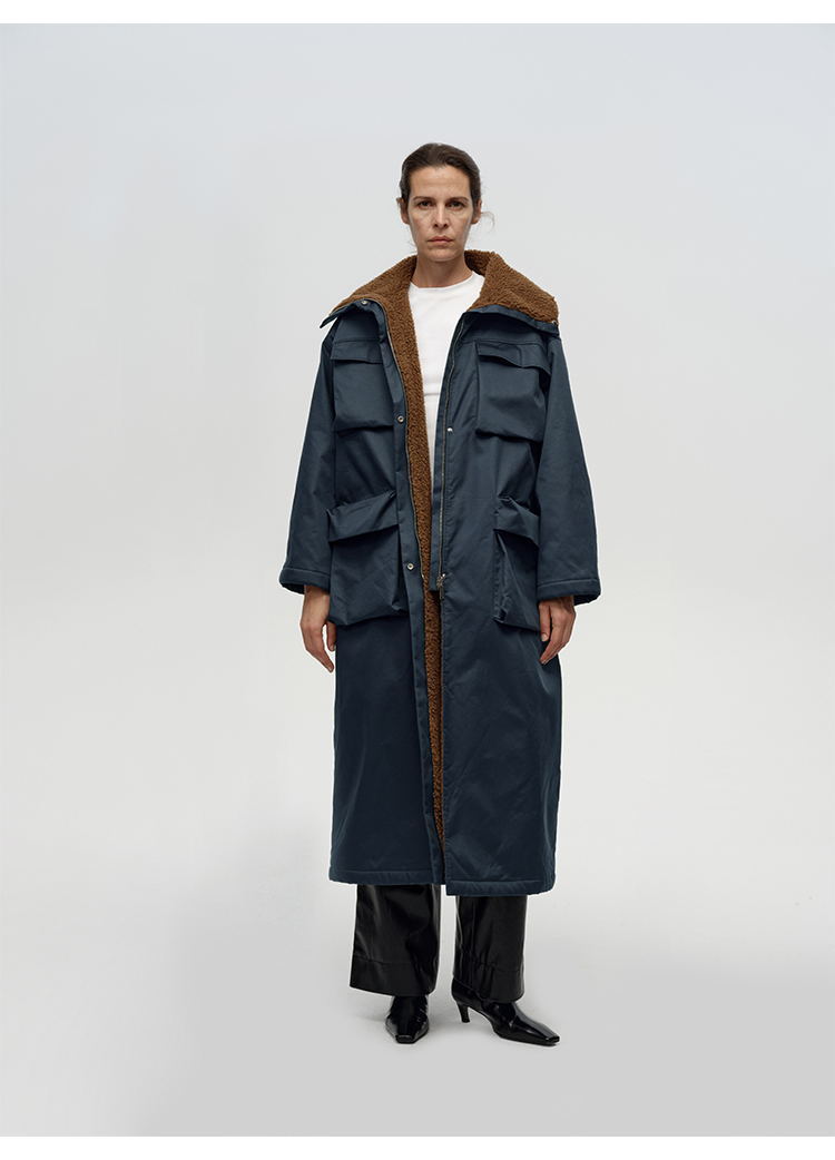 HIDEMI 立体大口袋工装设计感毛绒内胆加厚款拉链式长款大衣外套