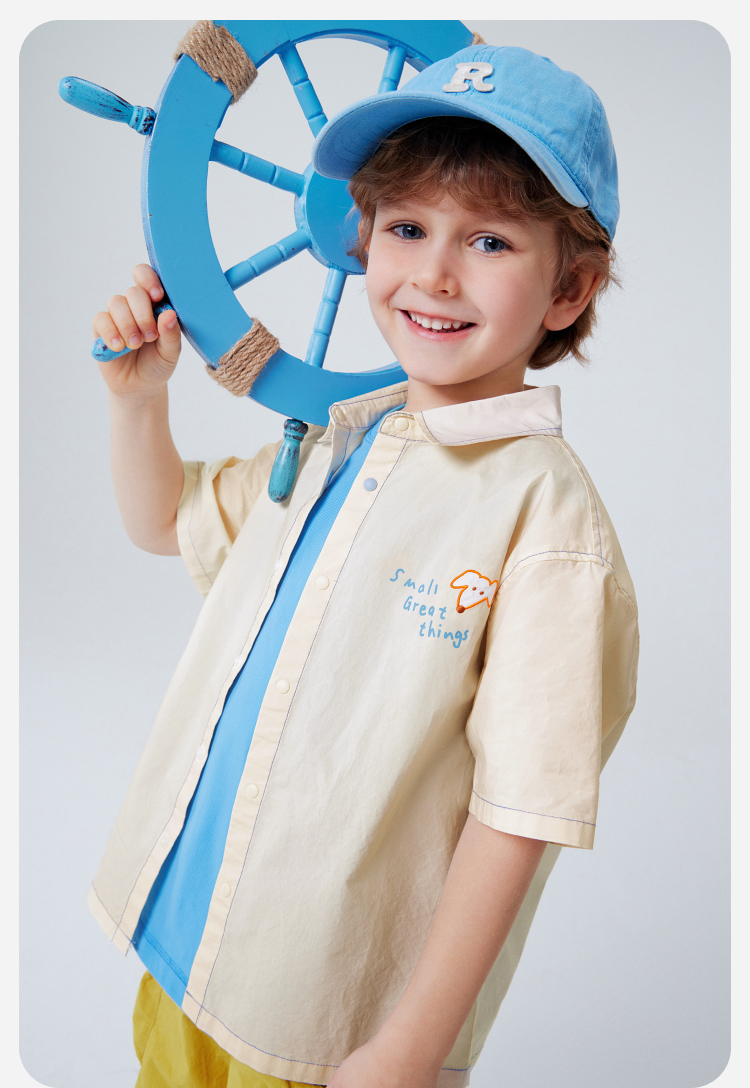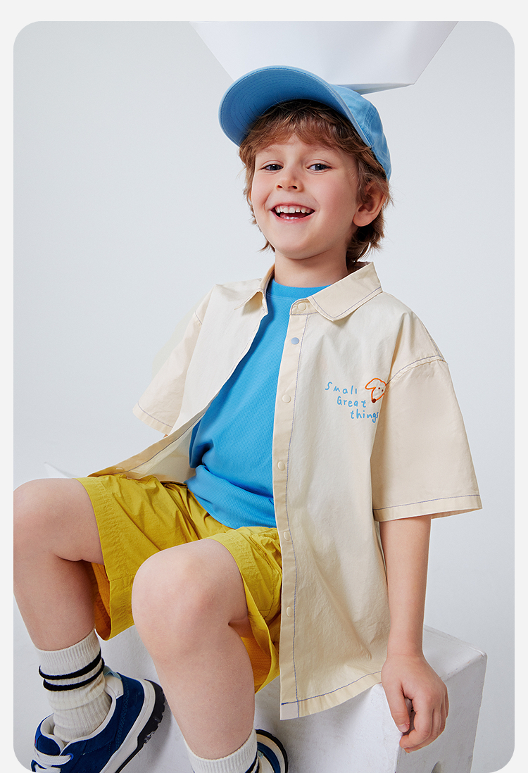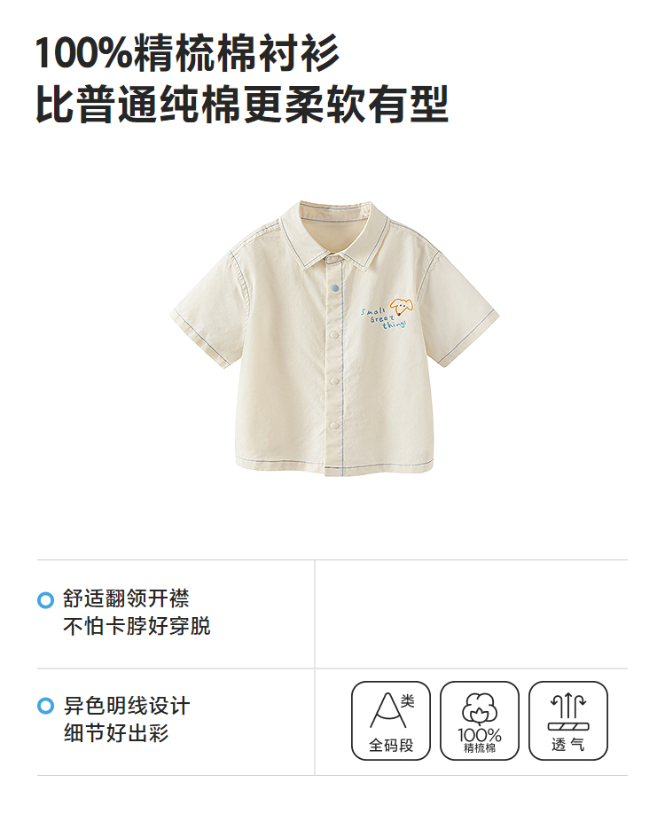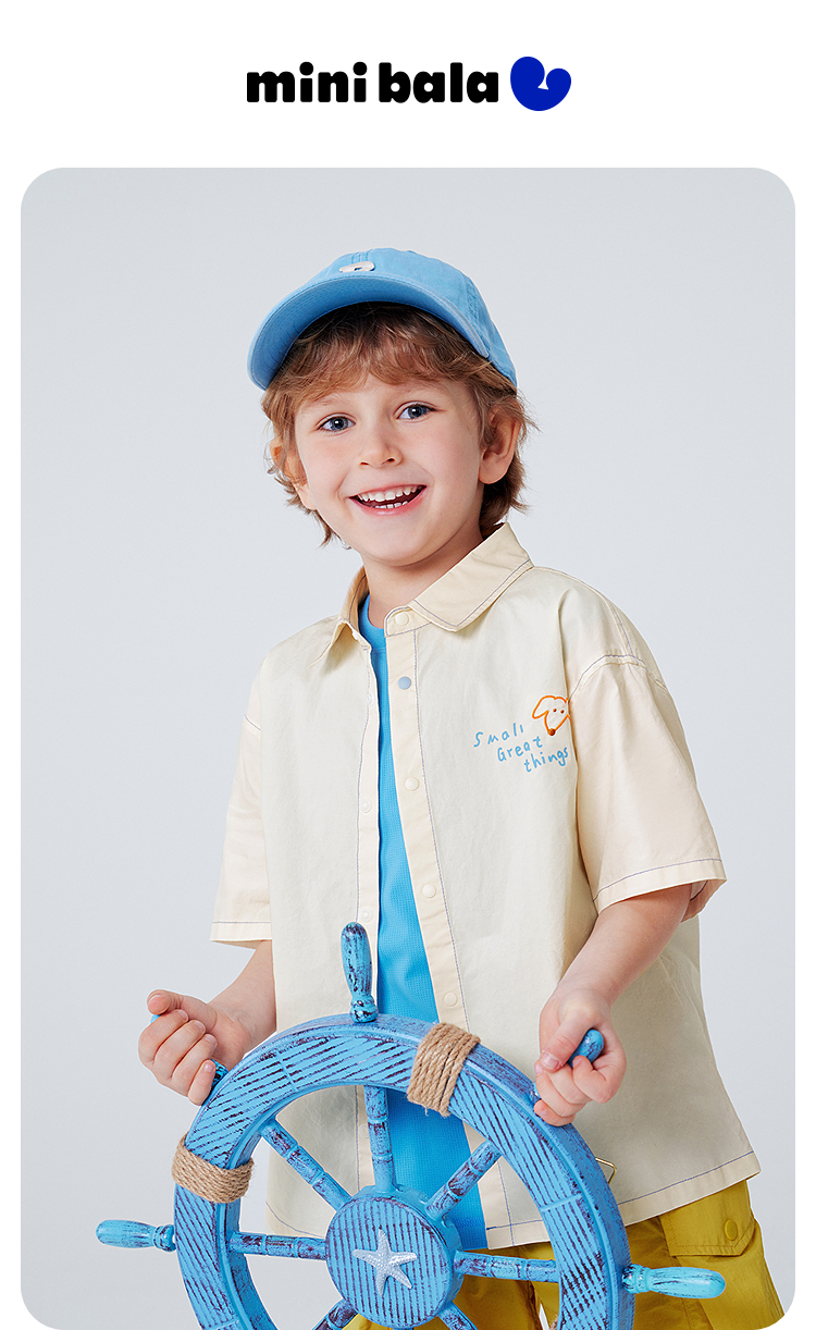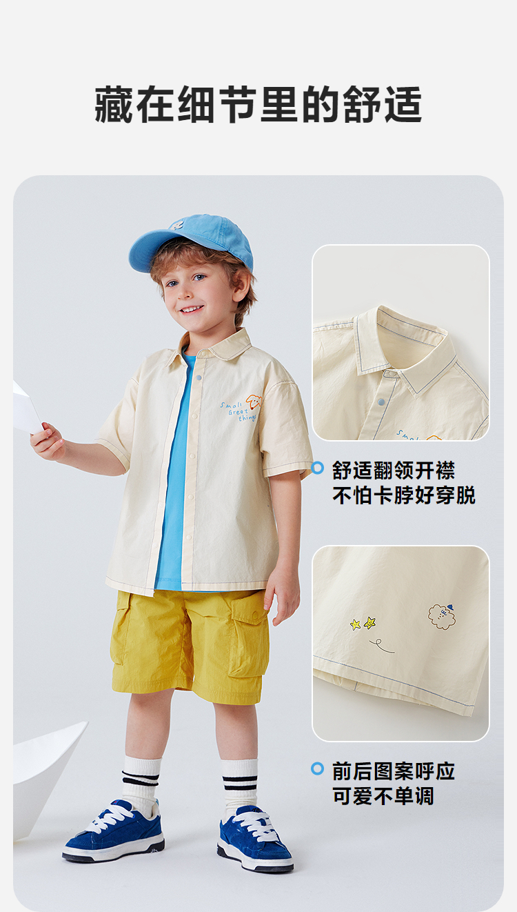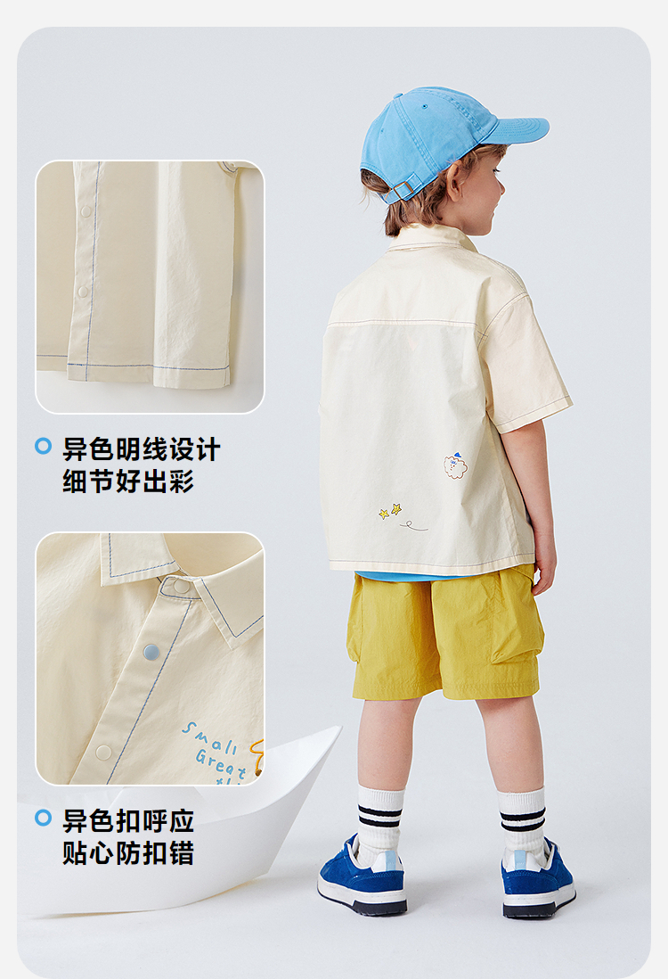 [纯棉]迷你巴拉巴拉男童衬衫透气柔软休闲可爱翻领短袖上衣2026夏