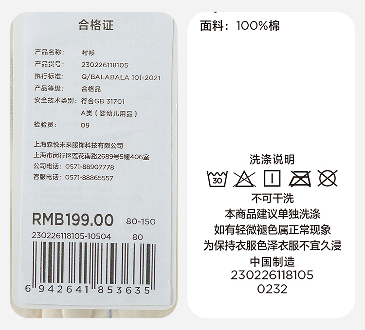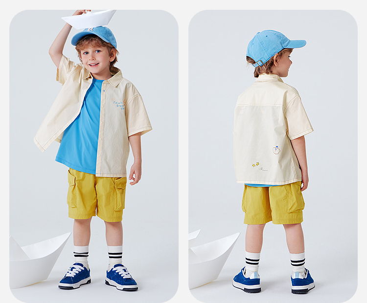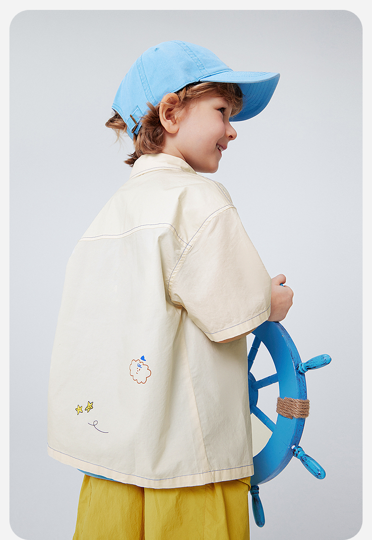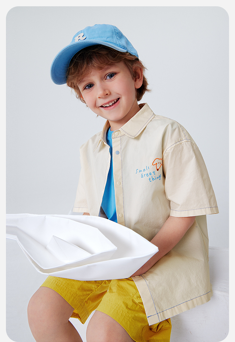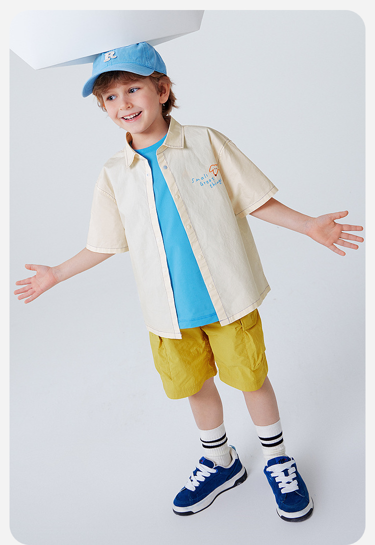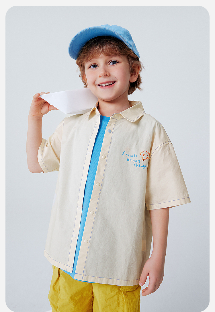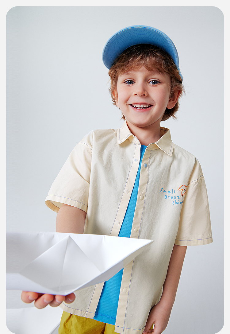 [纯棉]迷你巴拉巴拉男童衬衫透气柔软休闲可爱翻领短袖上衣2026夏