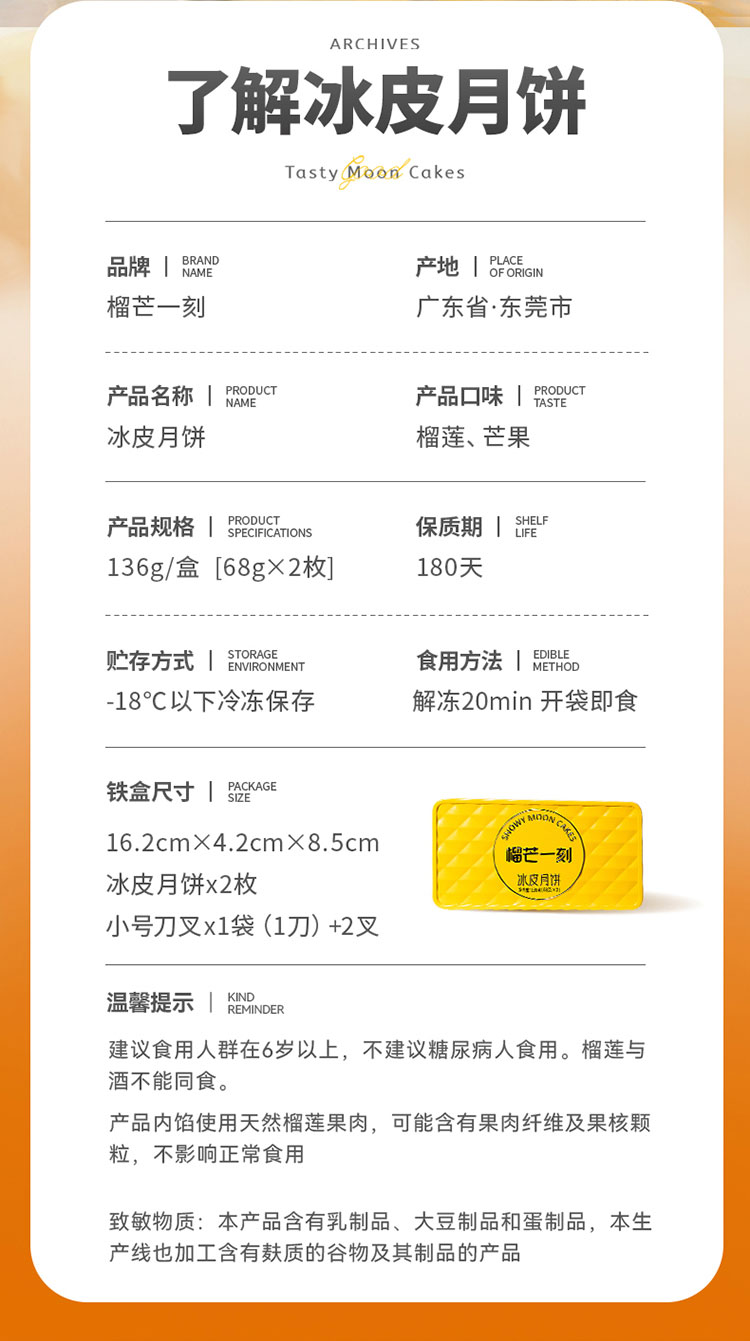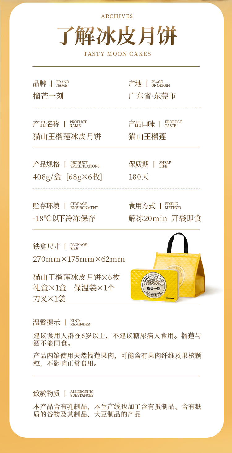 【真榴莲真果肉!】榴芒一刻冰皮月饼 爆浆水果榴莲口味 软糯冰皮入口清甜 广式流心月饼中秋送礼佳品 多口味可选