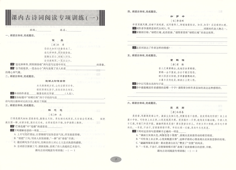 2022届新版中考文言诗文考试篇目点击初三语文模拟测试卷初中文言文点击2021光明日报出版社上海中学生九年级课内古文八年级古诗文