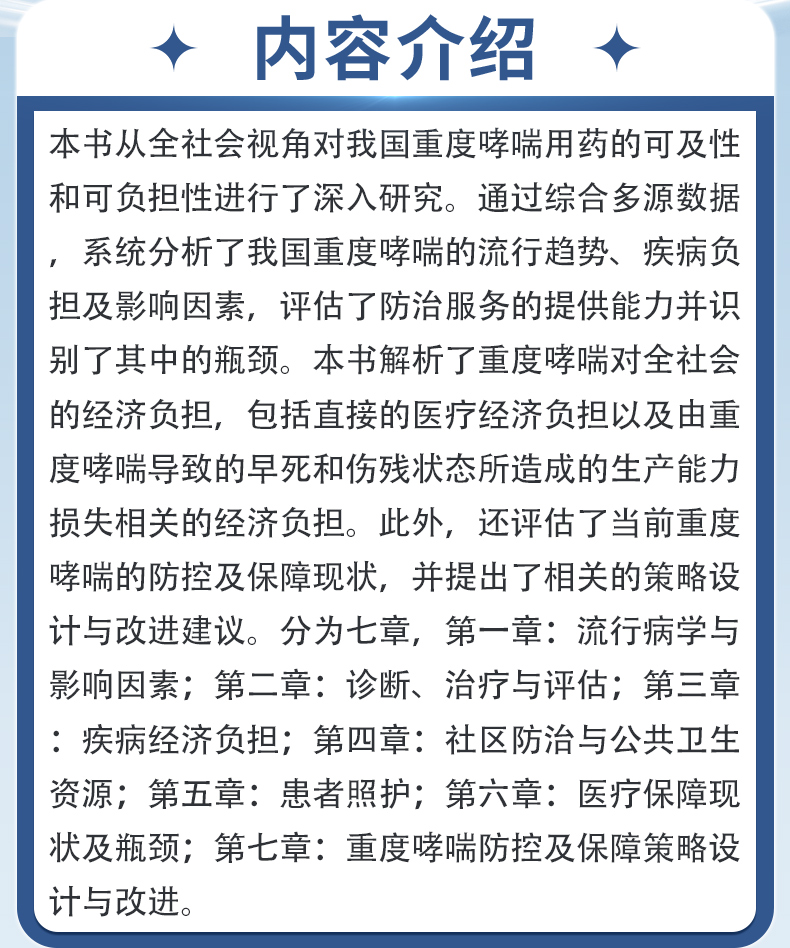 书名:中国重度哮喘用药可及性可负担性研究蓝皮书(2024)