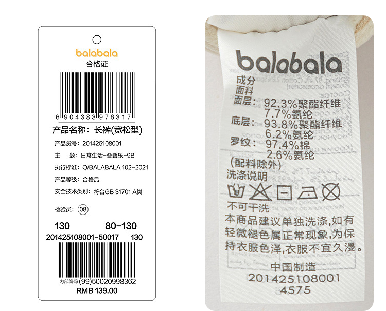 巴拉巴拉宝宝长裤加绒加厚束脚裤冬女童裤子2025新款