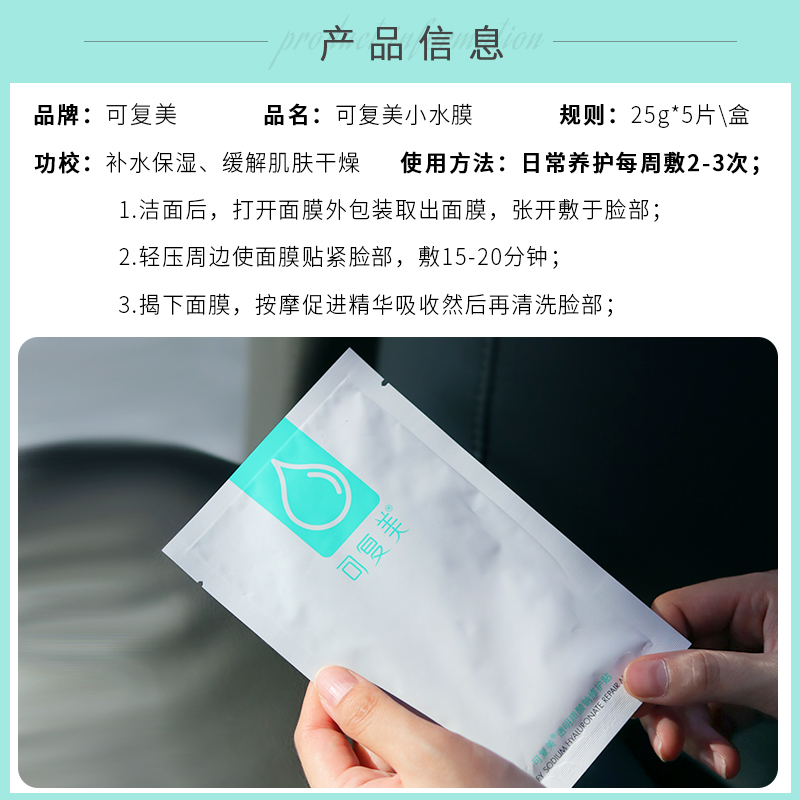 可复美透明质酸钠修护贴(小水膜)25g*5片 面膜贴