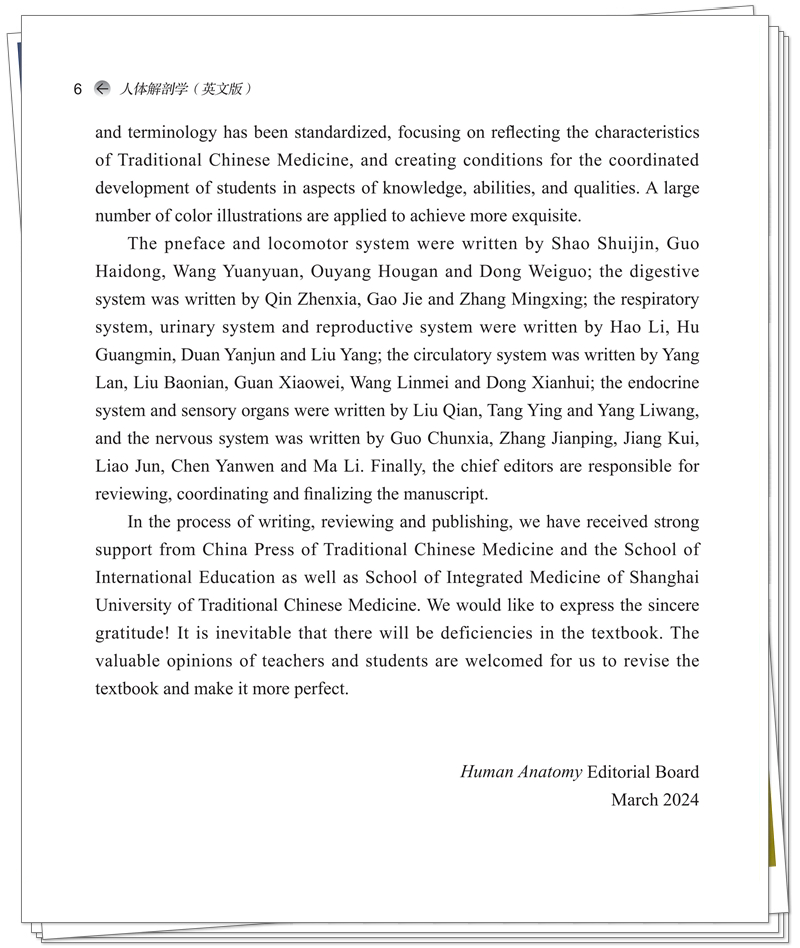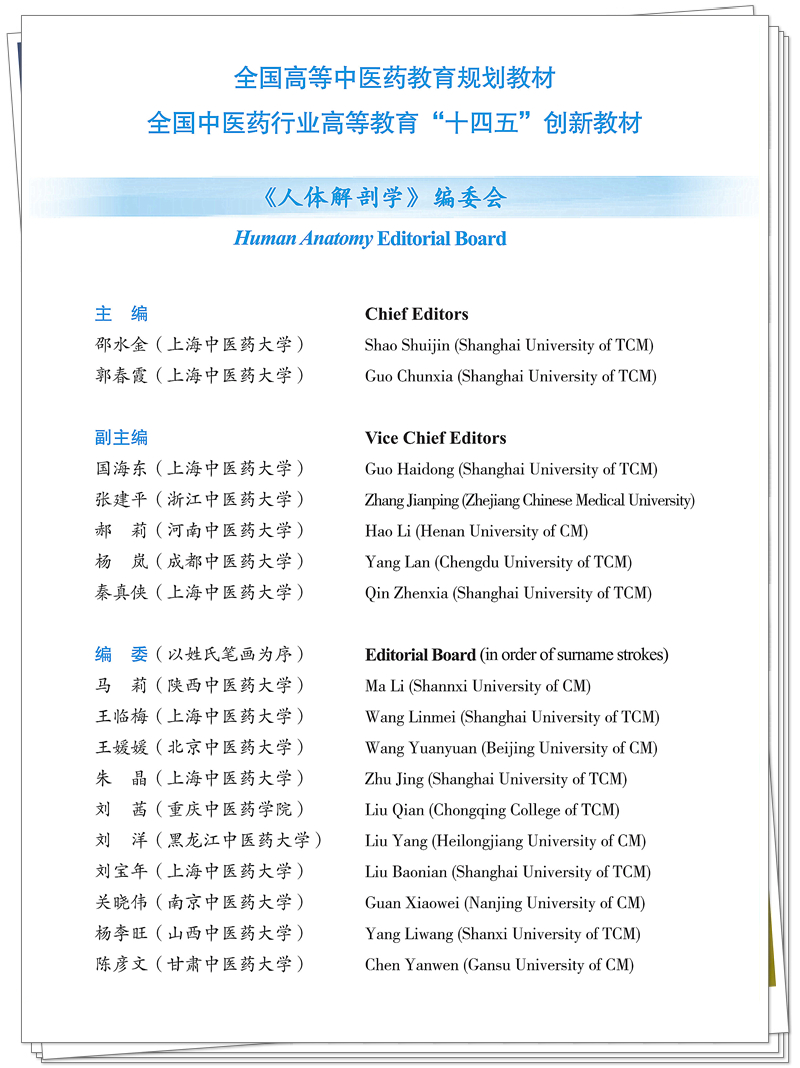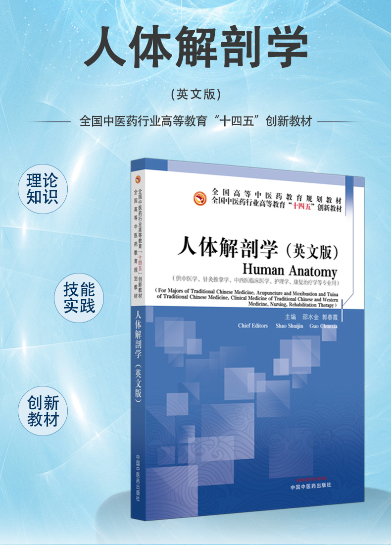 人体解剖学(英文版)十四五创新教材全国高等中医药教育规划教材 邵水金 郭春霞 主编 供中医学护理学等专业用 中国中医药出版社
