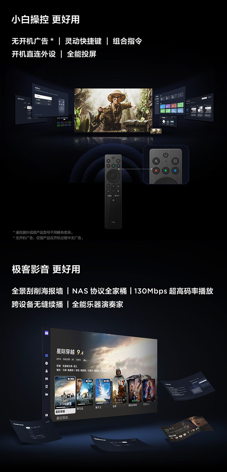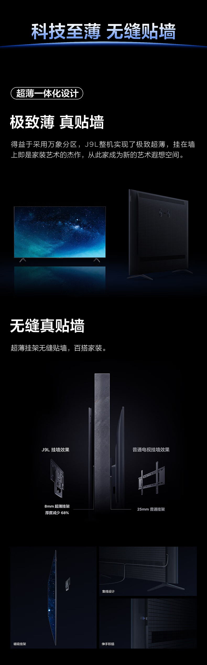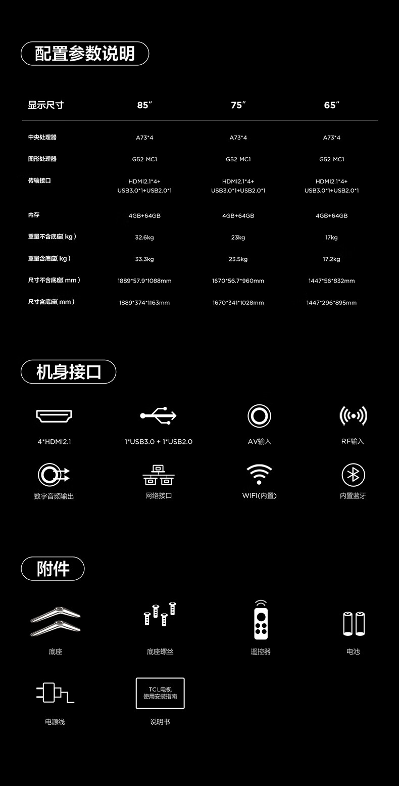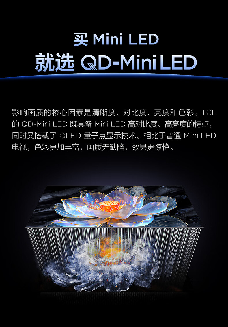 TCL电视 85J9L 85英寸 超薄QD-MiniLED电视 全通道288Hz 4+64GB 超薄一体化设计 灵控系统3.0