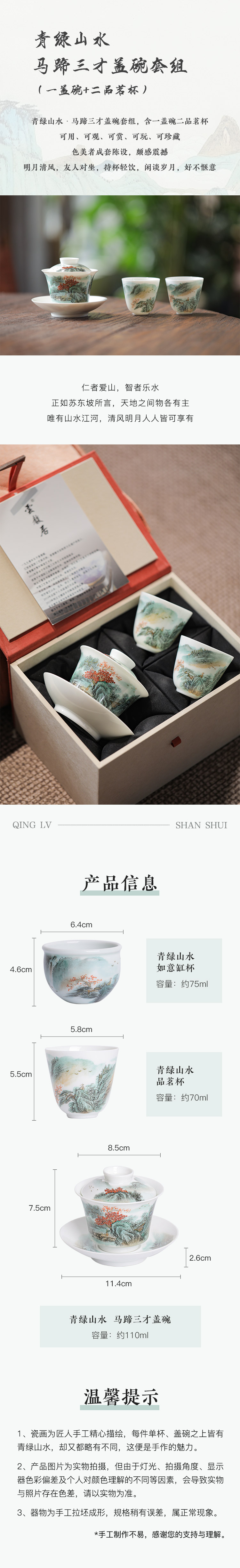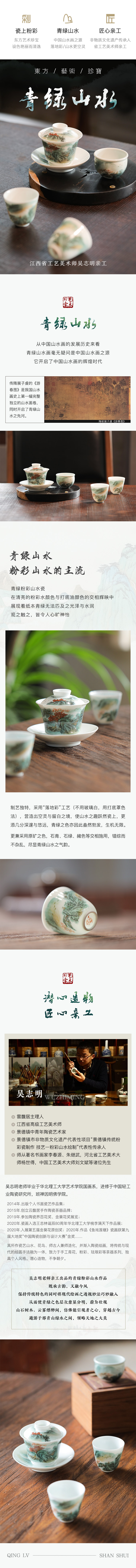 省工艺美术师亲工青绿粉彩山水茶器