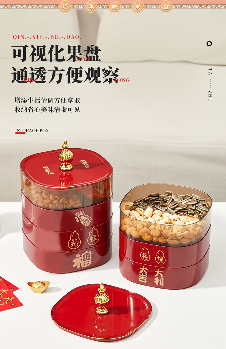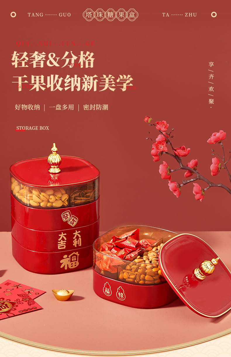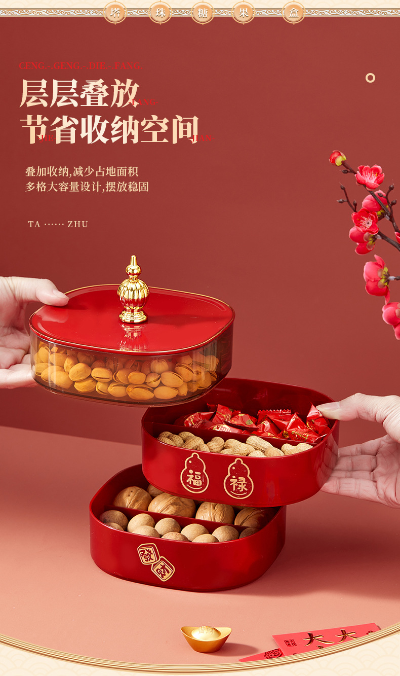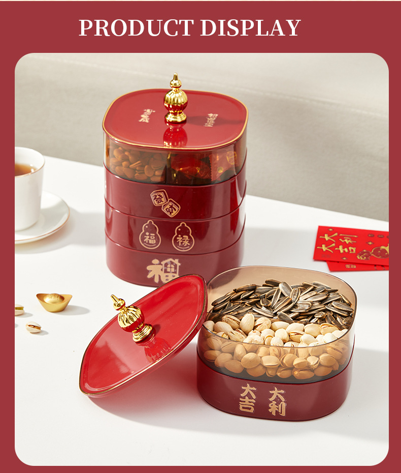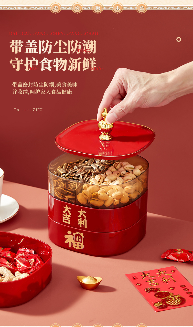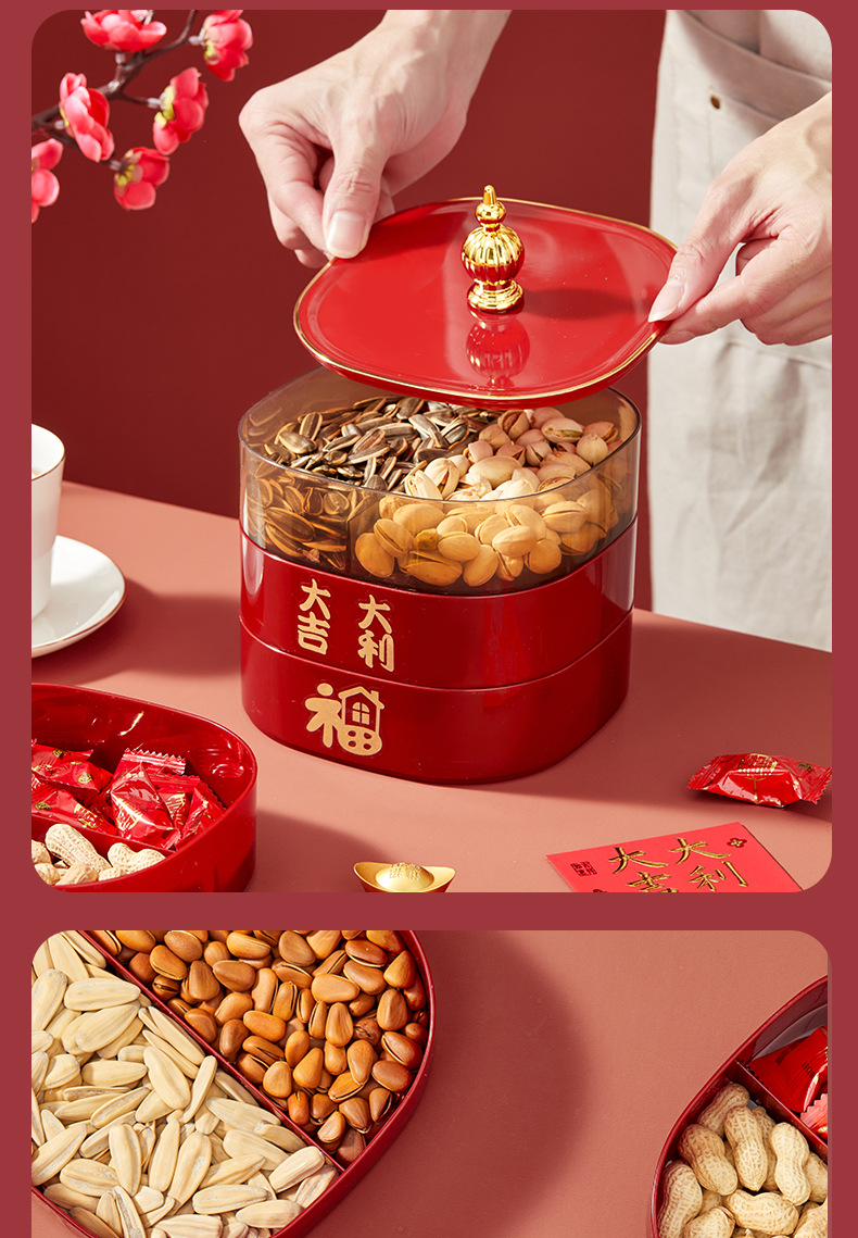 【一盘多用!好物收纳】严选喜庆糖果盒家用创意水果盘零食坚果分格干果盒高颜值收纳盒,带盖防尘防潮,守护食物新鲜。ry
