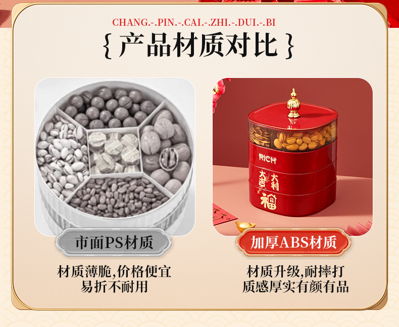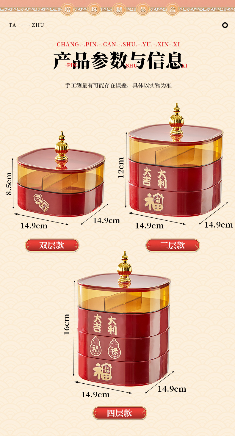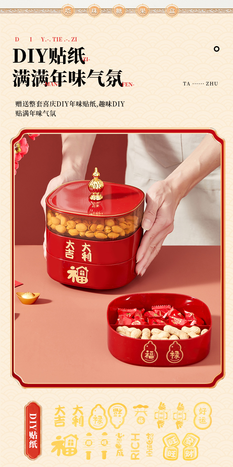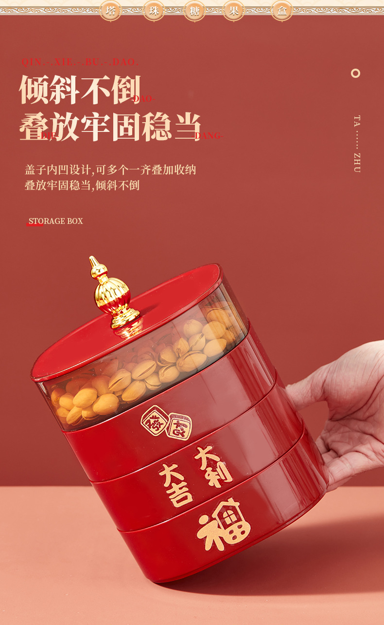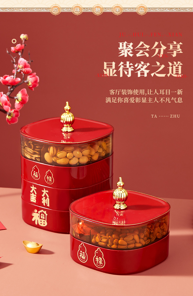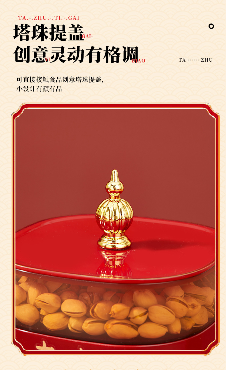 【一盘多用!好物收纳】严选喜庆糖果盒家用创意水果盘零食坚果分格干果盒高颜值收纳盒,带盖防尘防潮,守护食物新鲜。ry