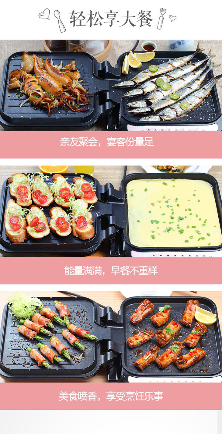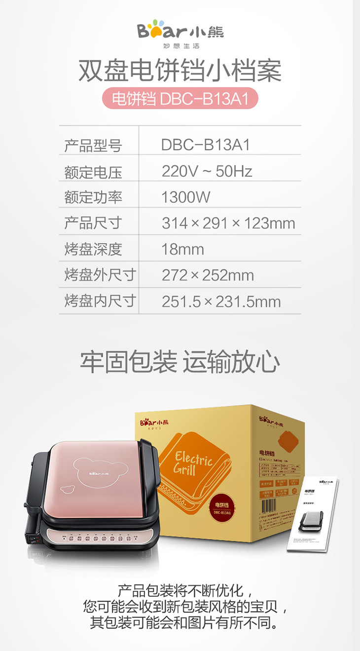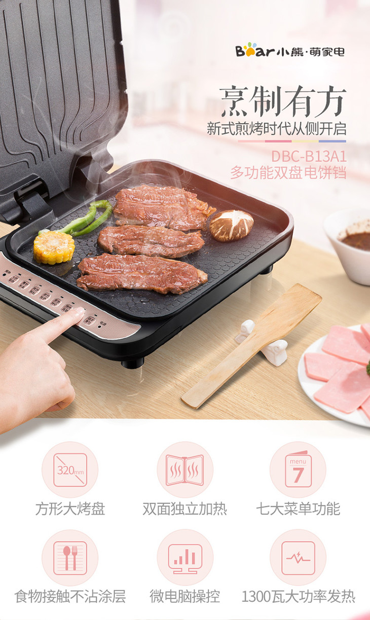 小熊(Bear)电饼铛家用双面加热电饼档煎饼铛烙饼锅加深加大烧烤电煎饼锅春饼机煎烤机不粘锅DBC-B13A1