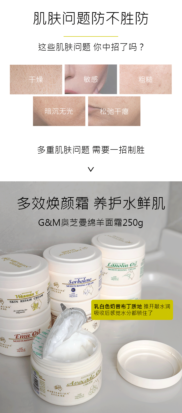 【中欧班列精选2盒】澳州澳芝曼维E/山羊奶蜂蜜/牛油果/卡卡杜李面霜250g/盒 原装进口 品牌授权