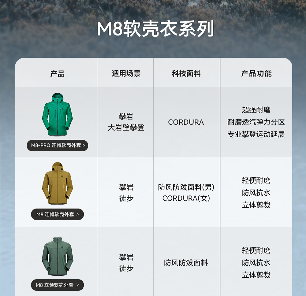 - 致力于推动登山及探险运动发展,为运动员及专业爱好者提供高性能的户外装备。