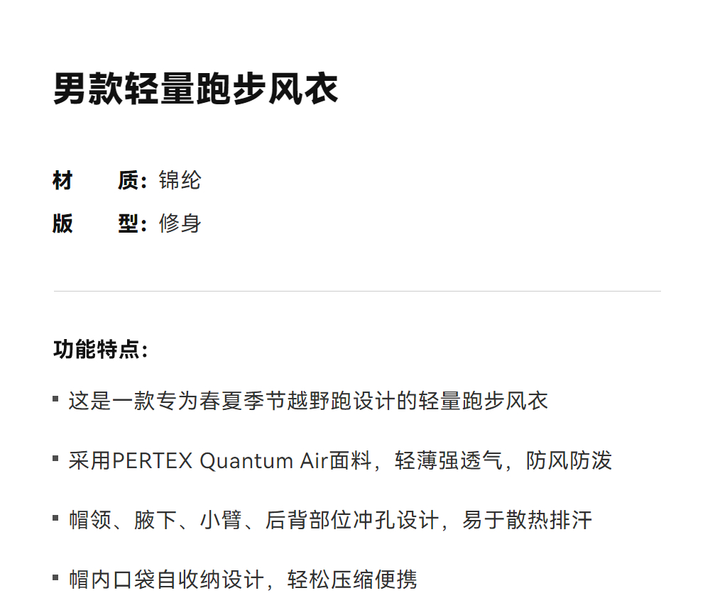 KAILAS凯乐石 户外运动 男款轻薄风衣KG2426112【Z】