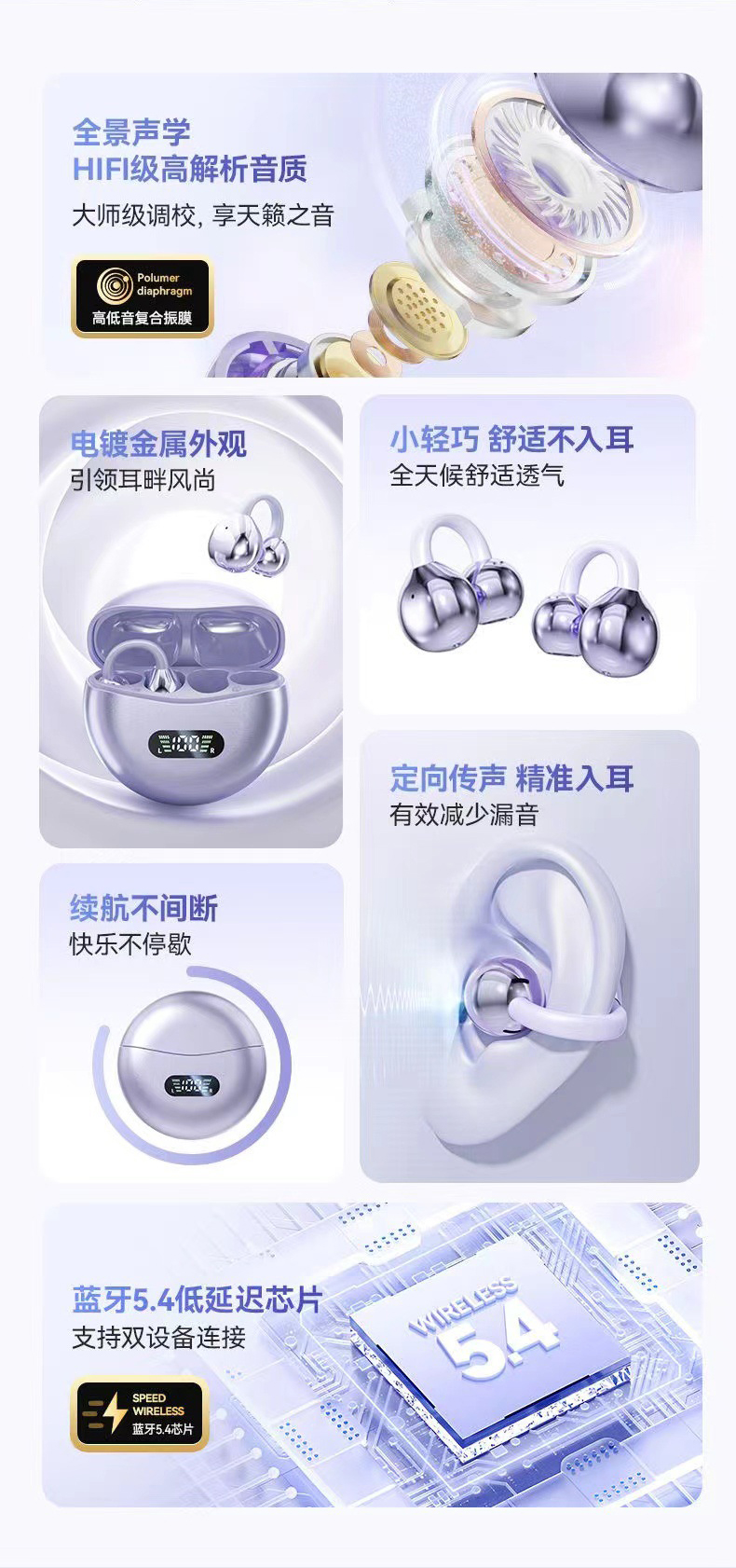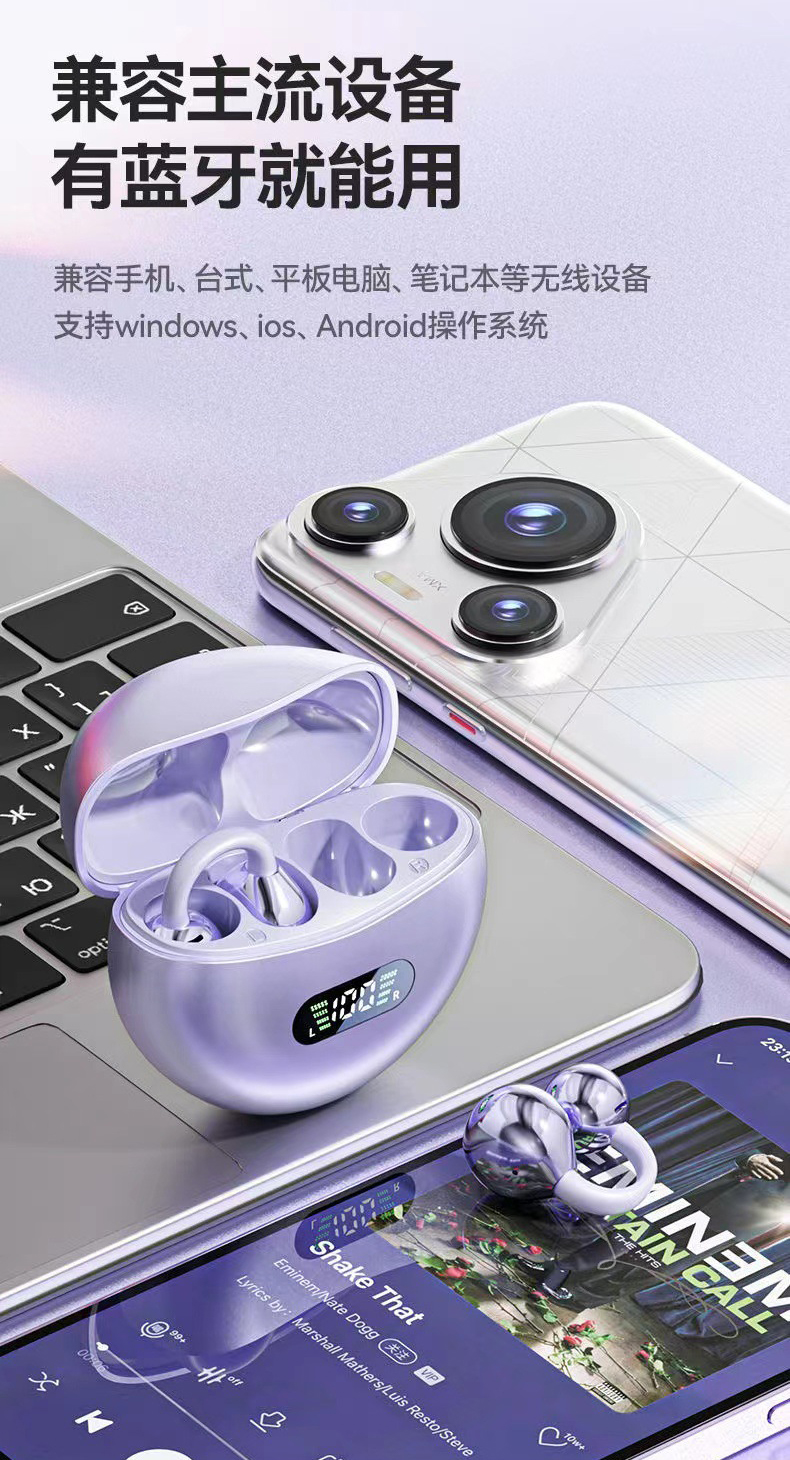【小来】BYOUNGER耳夹式蓝牙耳机,电量数显 超长续航 保真音质 广泛兼容