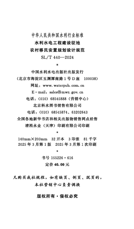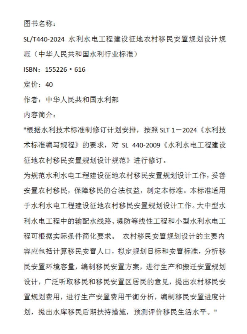 SL/T440-2024水利水电工程建设征地农村移民安置规划设计规范(中华人民共和国水利行业标准)