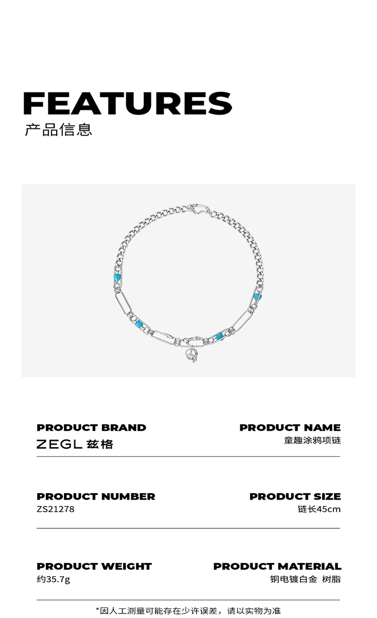 ZEGL设计师涂鸦项链女ins嘻哈锁骨毛衣链秋冬配饰品