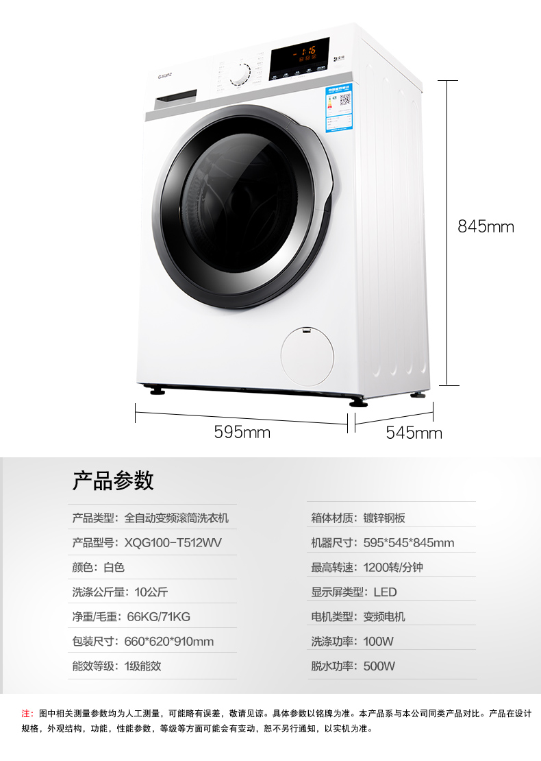 格兰仕洗衣机XQG100-T512WV白色