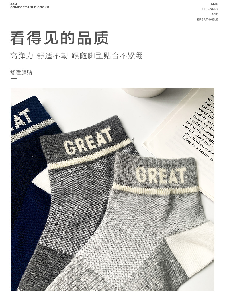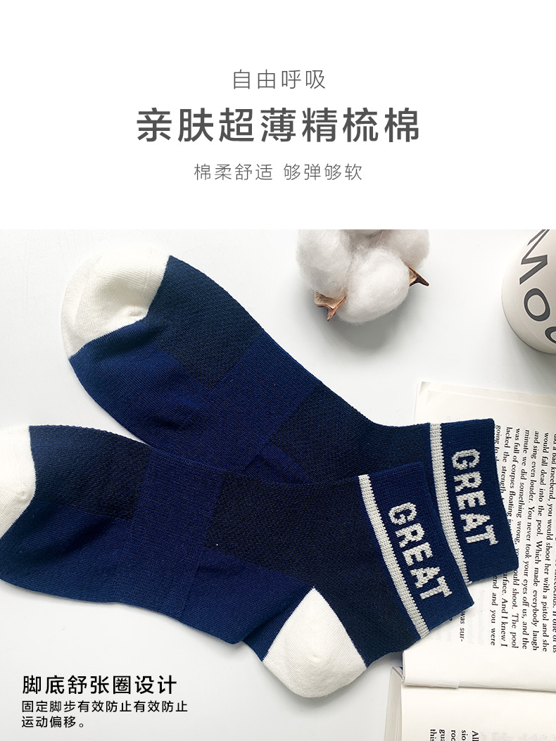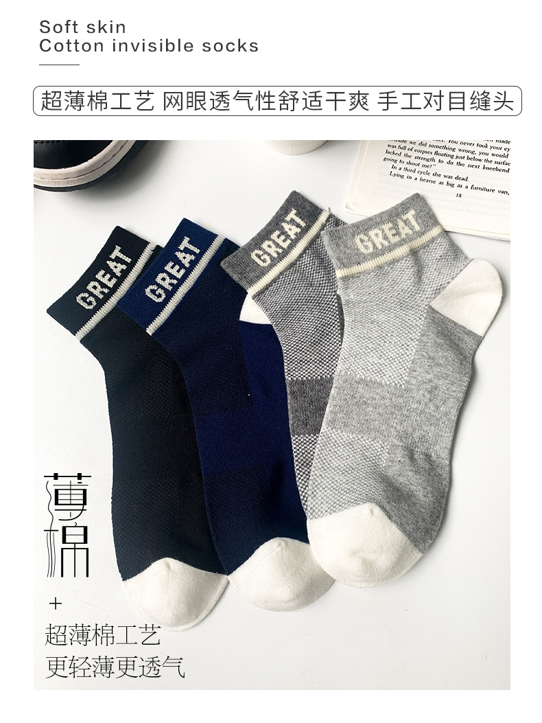 足装秀24新品夏天男士短袜棉质薄棉网眼轻薄透气运动船袜男袜子