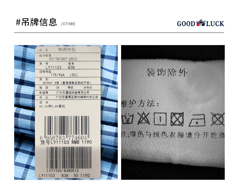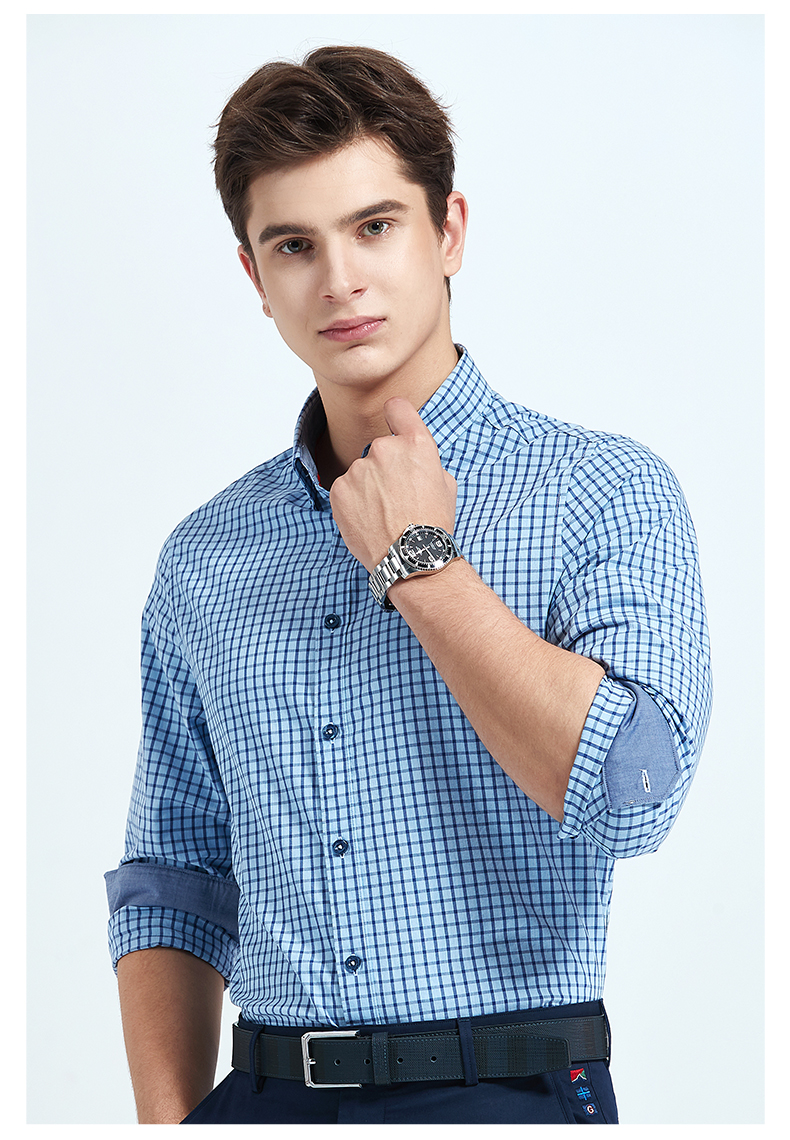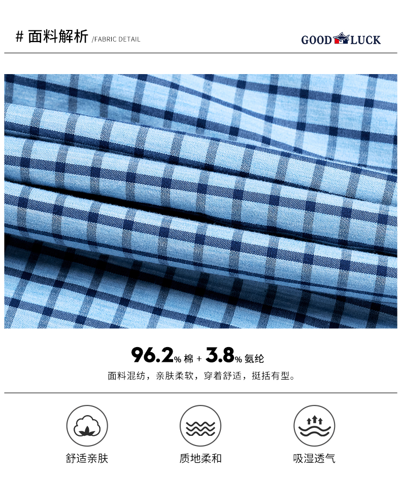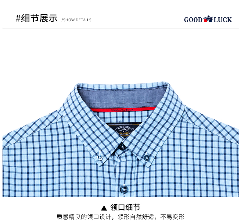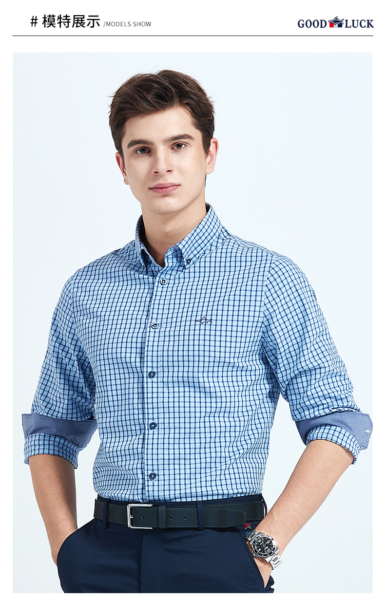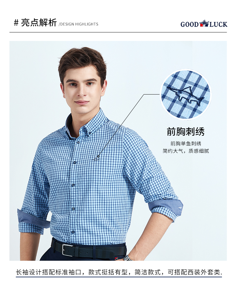 GOOD LUCK/德鲨棉质弹力舒适格纹长袖衬衫LY11103-838