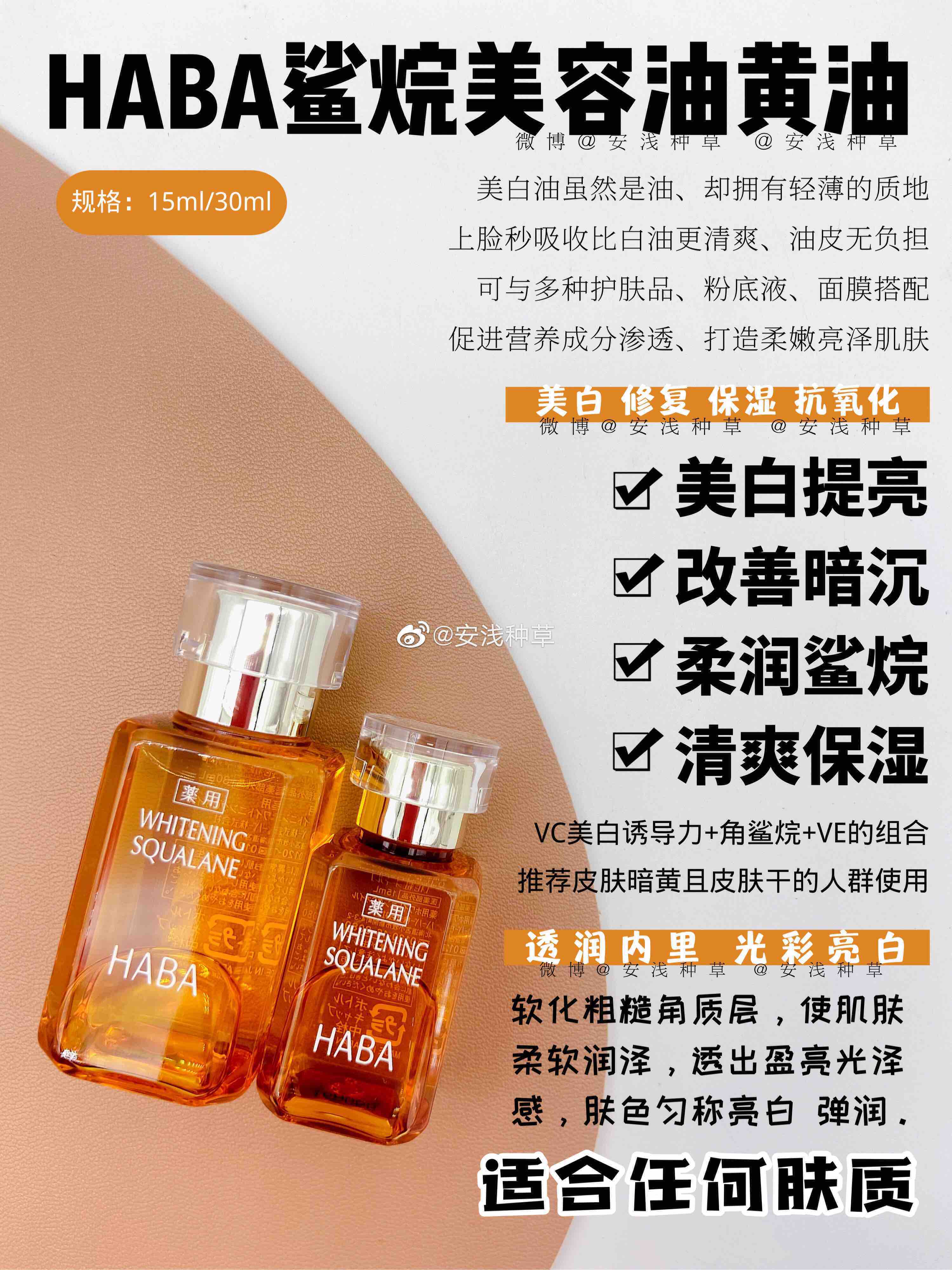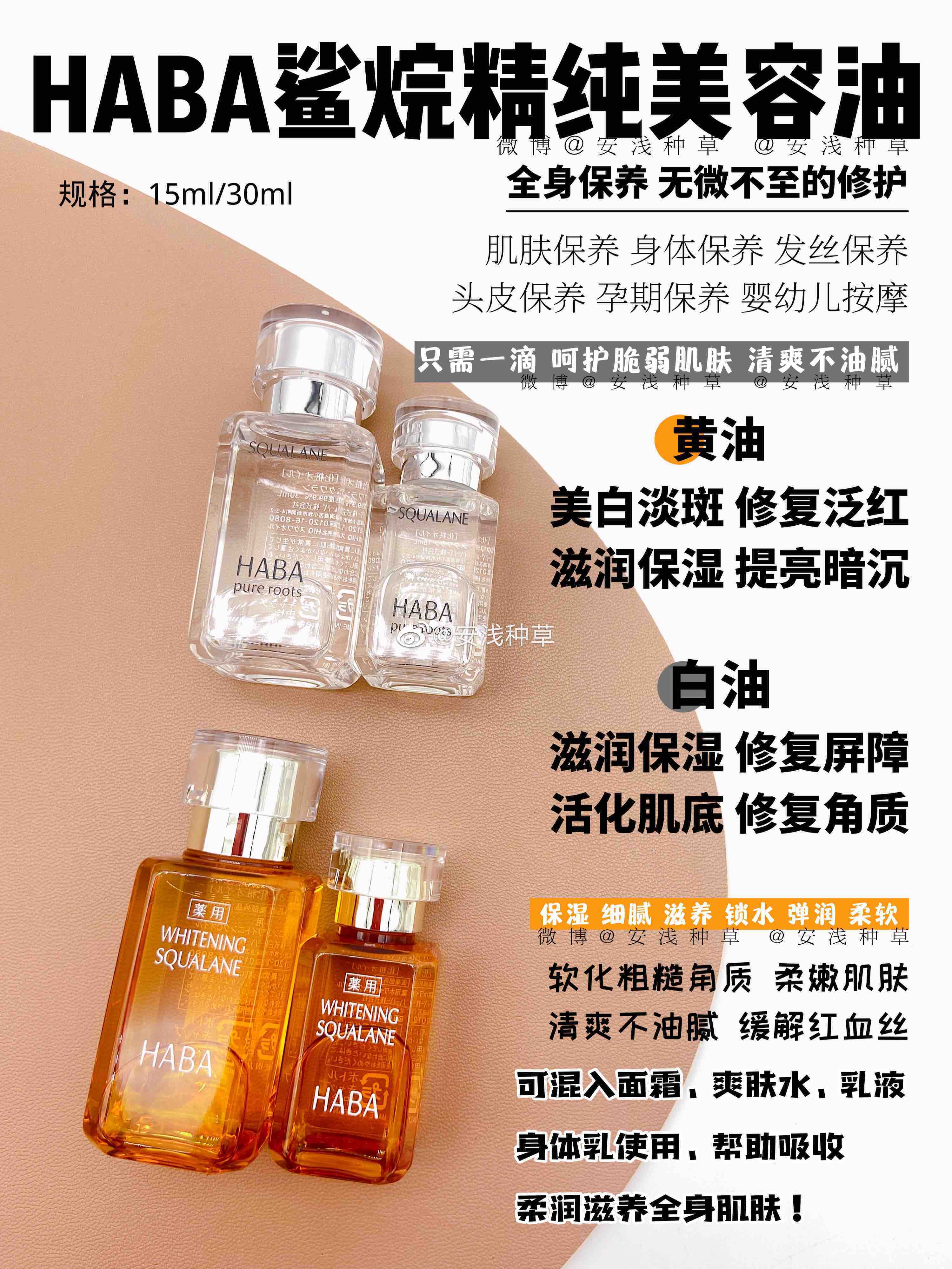 日本HABA角鲨烷一代保湿精华透明美容油 白油/黄油 透白提亮面部淡斑敏感肌修复角质层