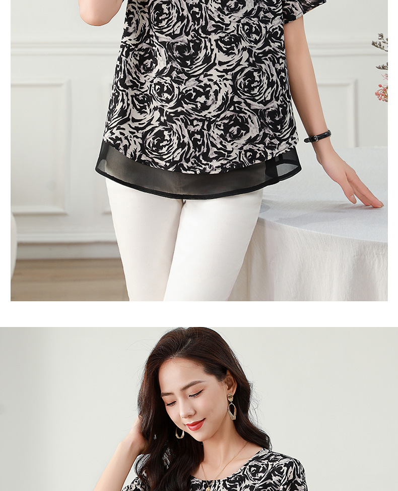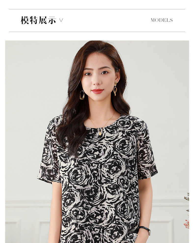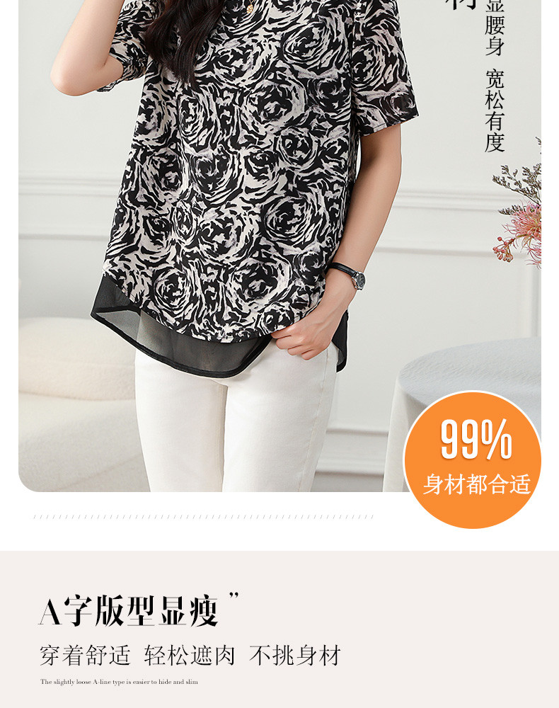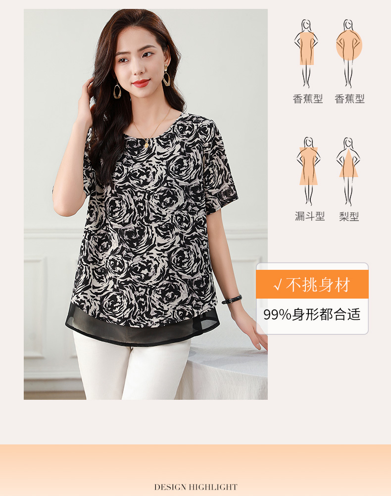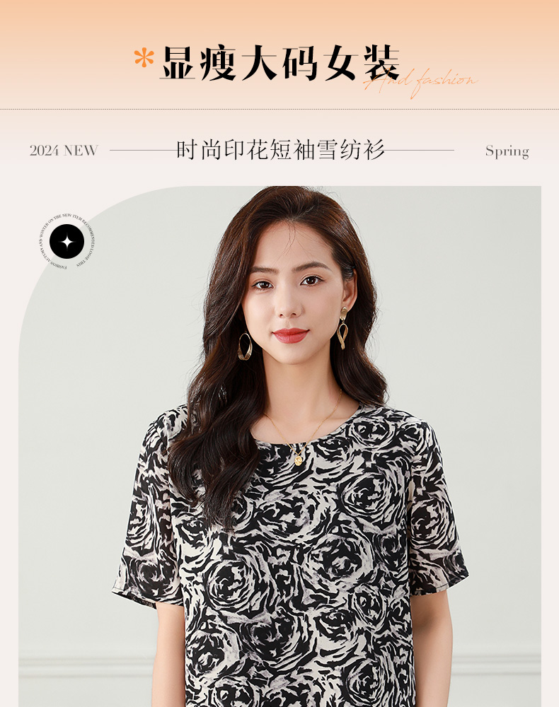 雪纺上衣女短袖大码女装2025年夏季新款女士上衣时尚碎花妈妈夏装