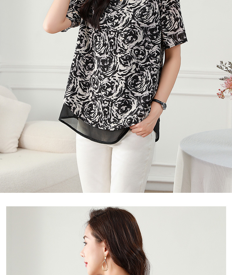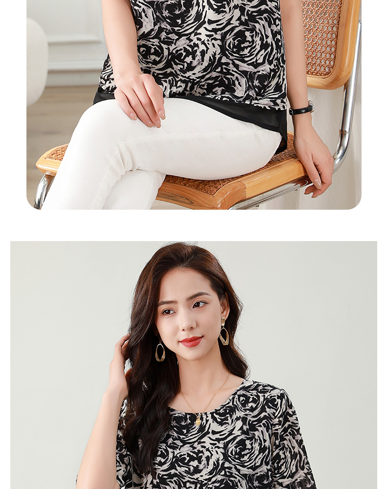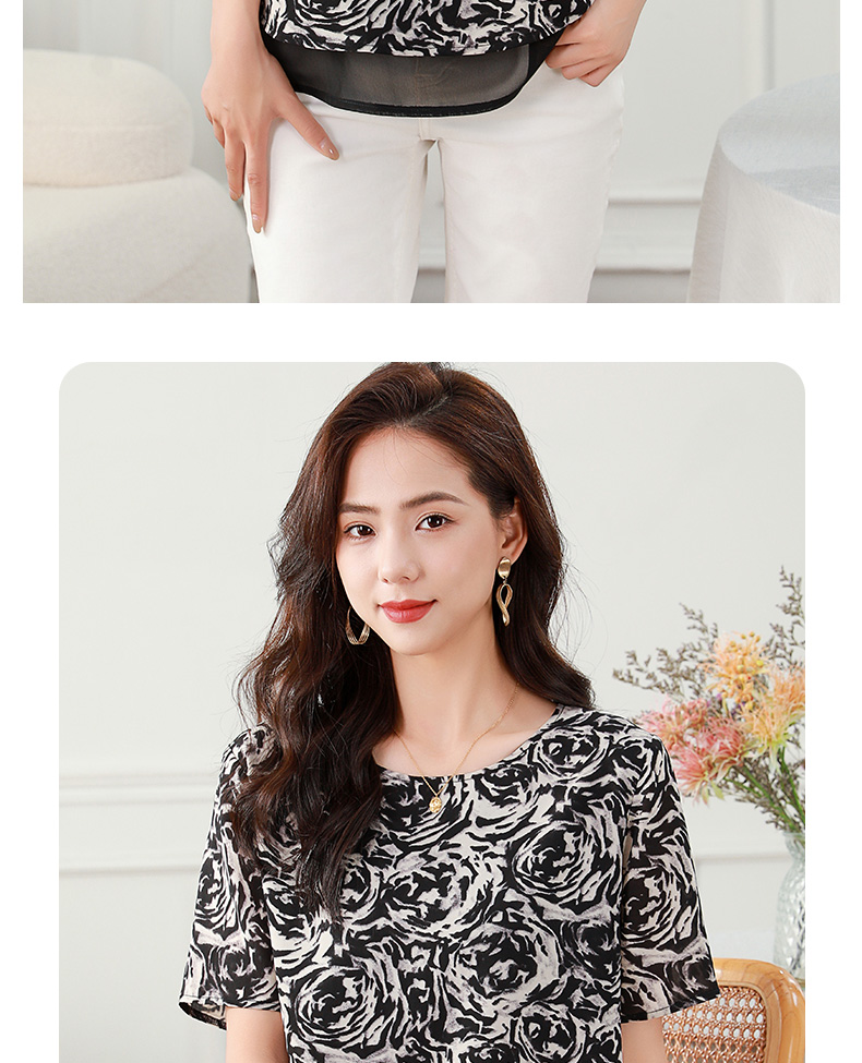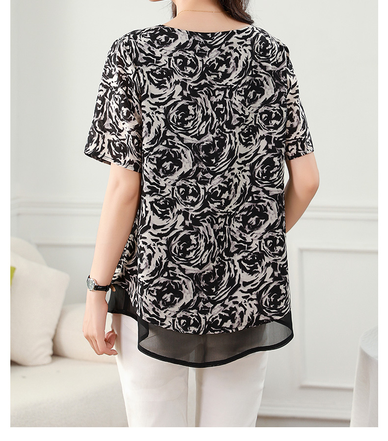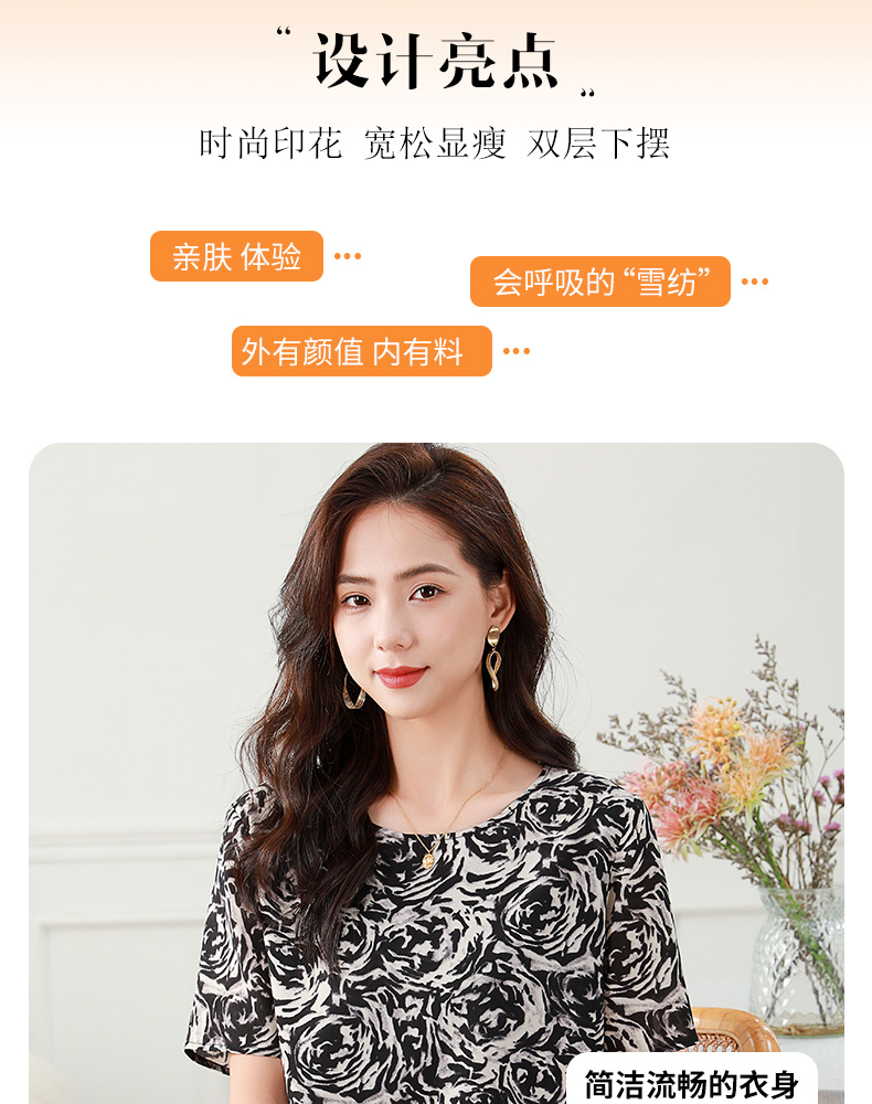 雪纺上衣女短袖大码女装2025年夏季新款女士上衣时尚碎花妈妈夏装