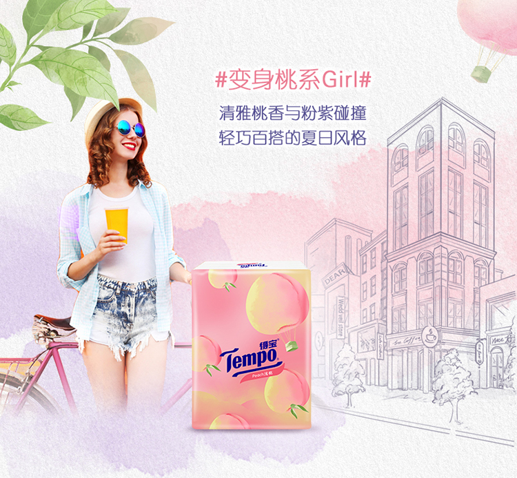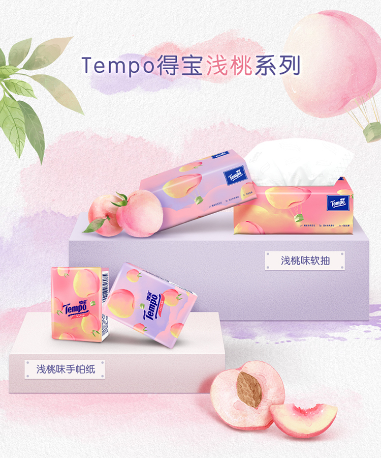 『得宝Tempo』手帕纸4层24小包 便携式手帕纸(甜心桃味)