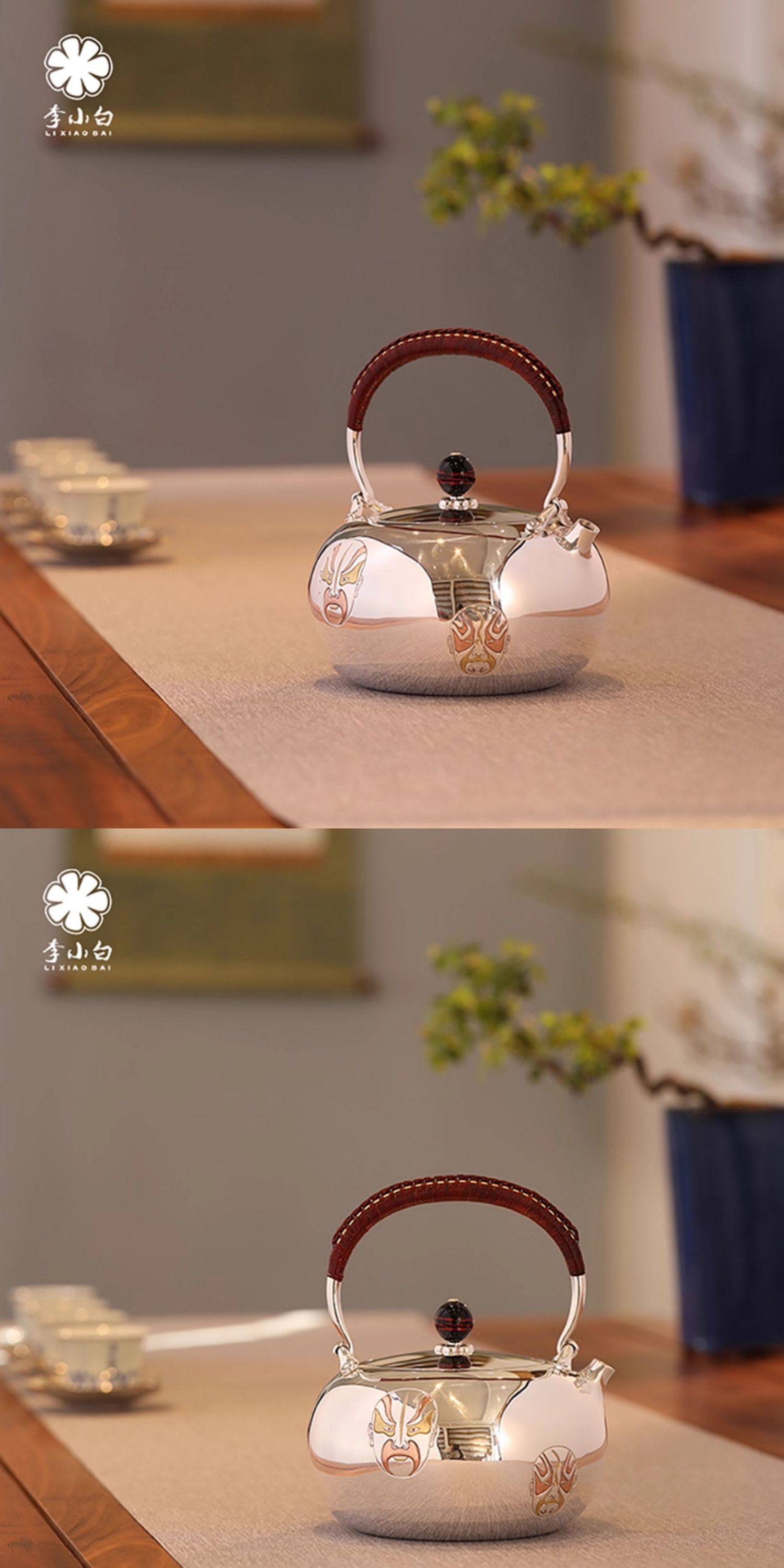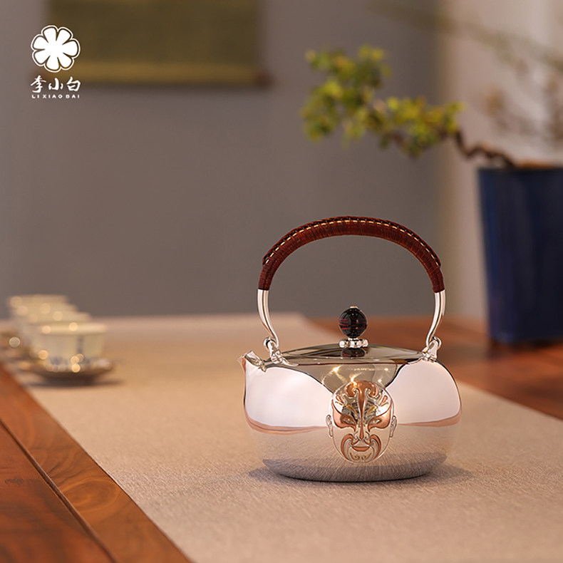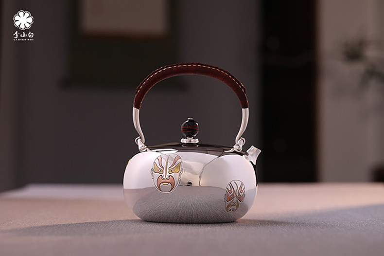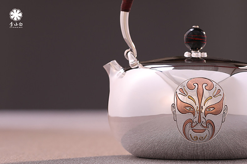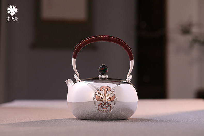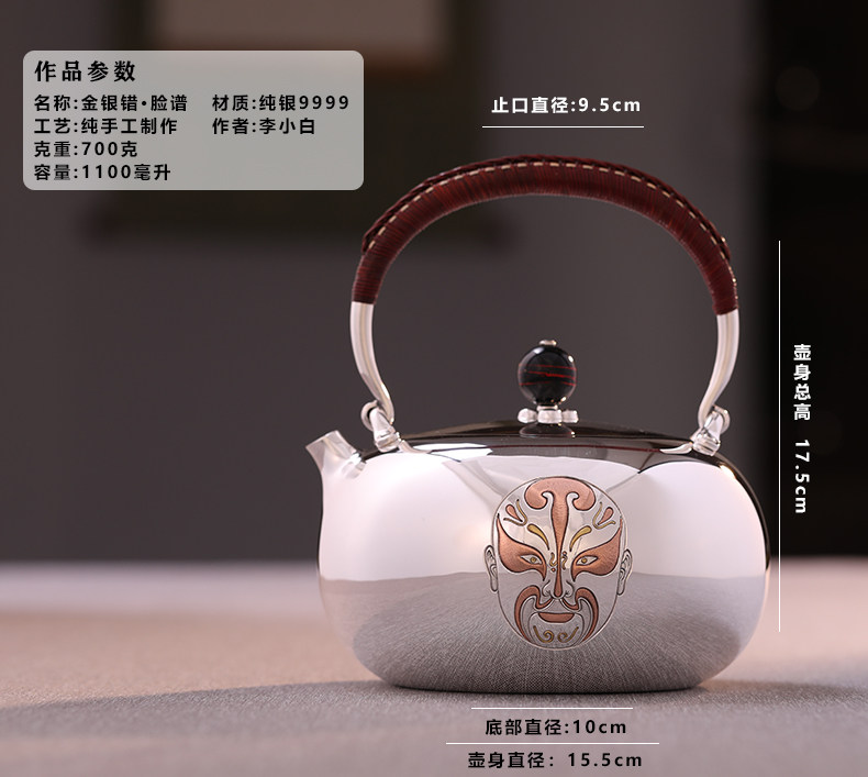 李小白银壶 纯银9999烧水壶 金银错 脸谱 银壶烧水壶 烧水银壶 银壶 茶壶