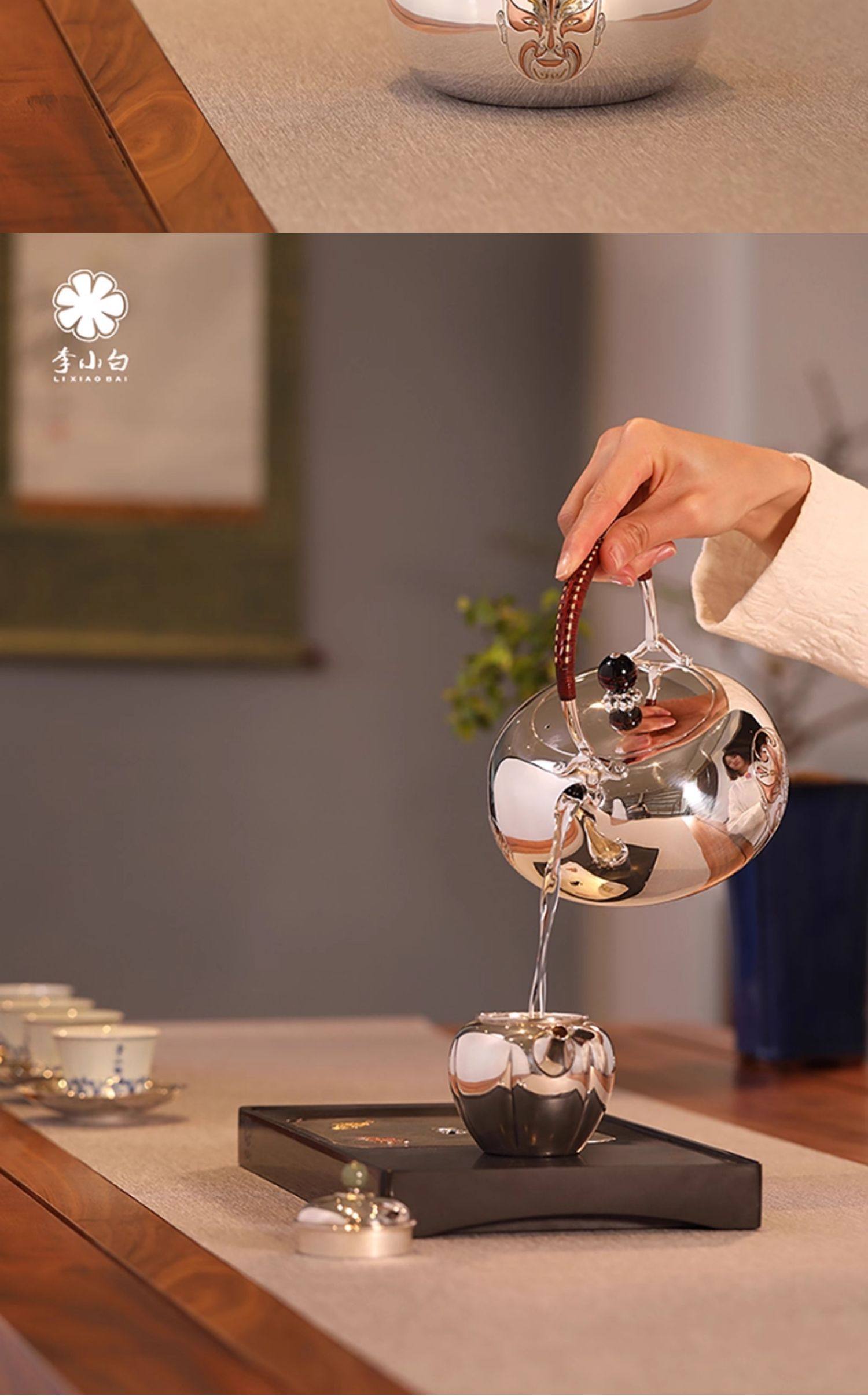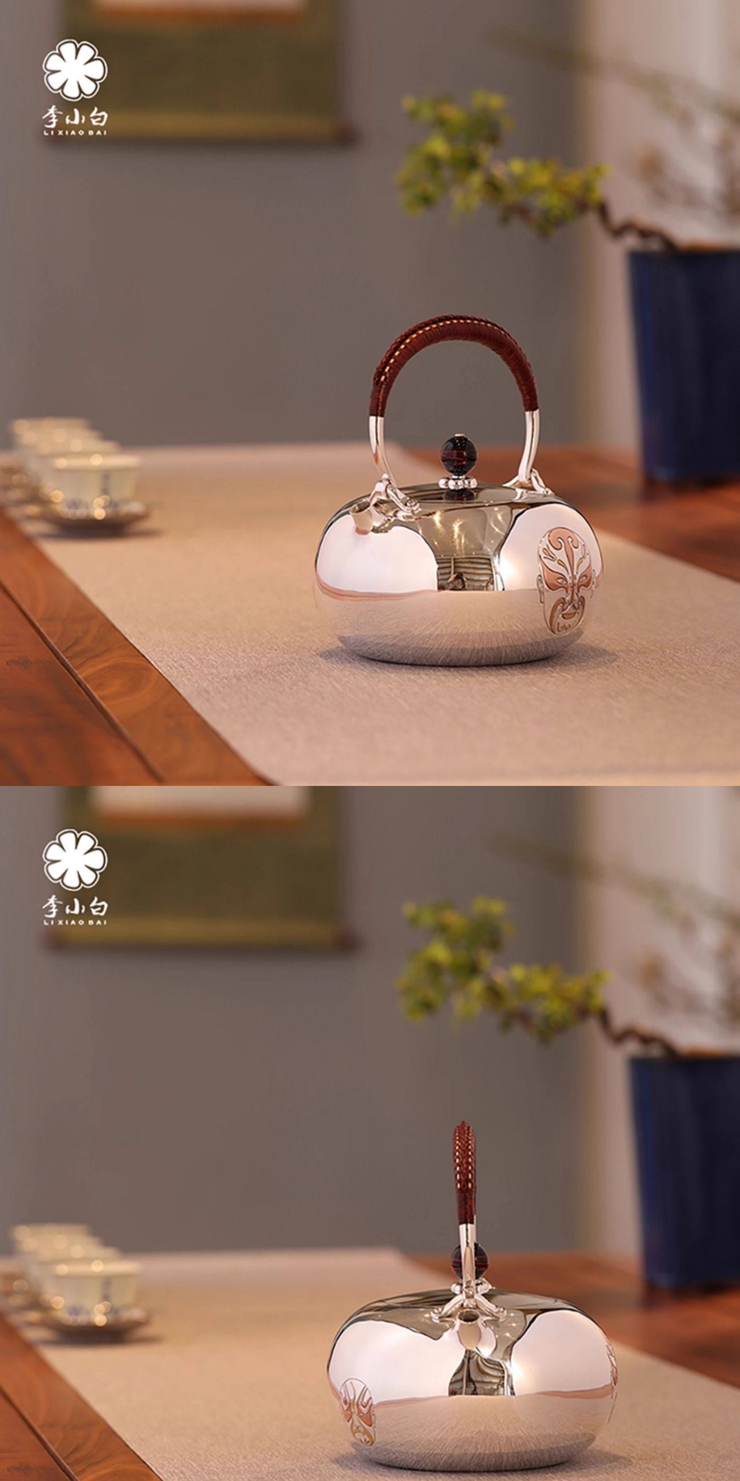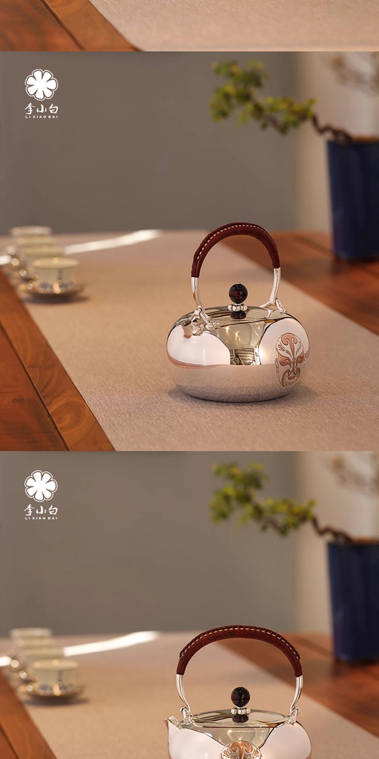 李小白银壶 纯银9999烧水壶 金银错 脸谱 银壶烧水壶 烧水银壶 银壶 茶壶