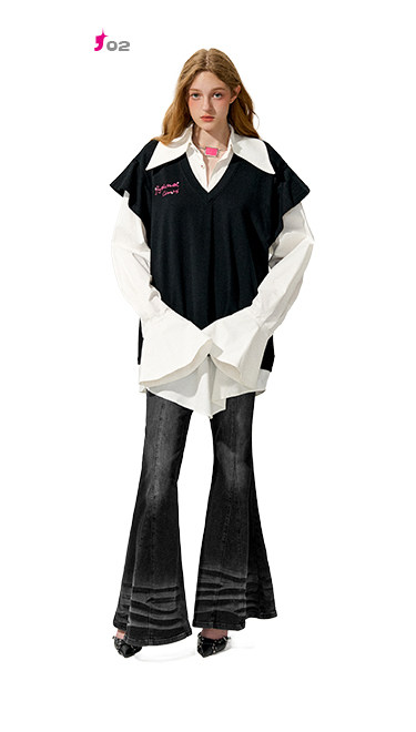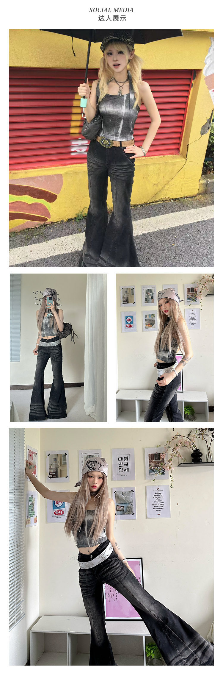 FTT FlyTheTruth『黑天鹅』 复古渐变牛仔裤女秋季新款高弹喇叭裤