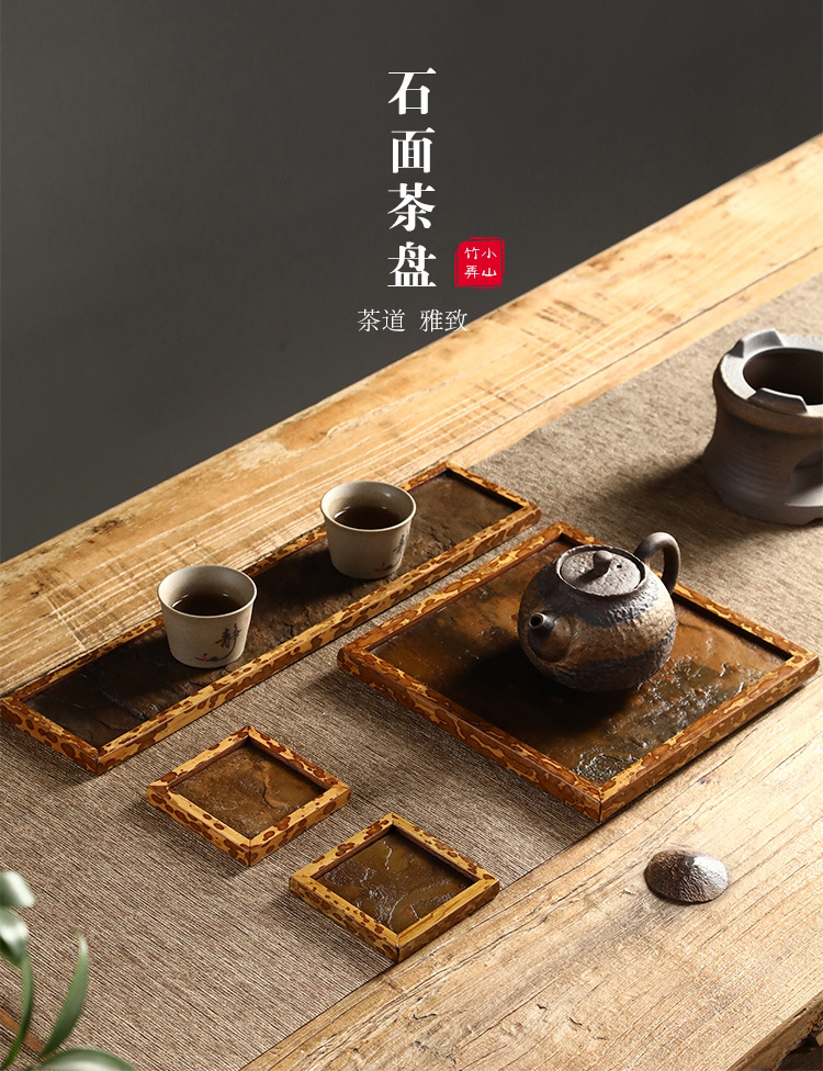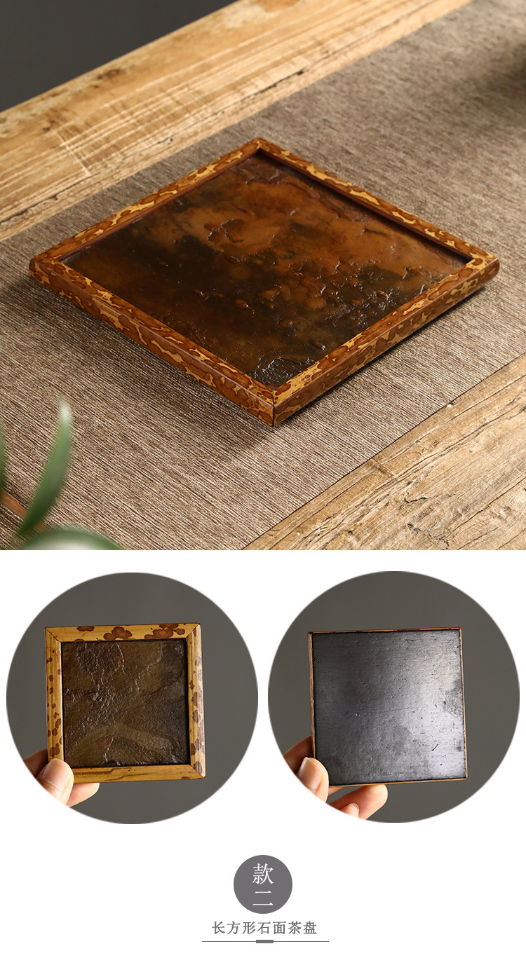 RW梅鹿竹茶盘岩石大漆干泡台岩崖石托盘古文盘奉竹茶盘泡茶具收纳盘