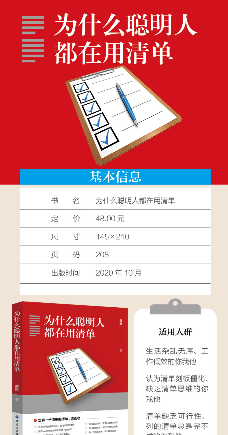 2020年新书 为什么聪明人都在用清单 舒娅 时间管理书籍 清单制作和使用方法 建立清单思维 提升思考速度与行动效率高效工作学习书