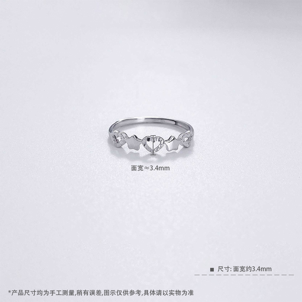 【限时8.8折】【线上铂金馆】PT950 #怦然心动 【精品】铂金镂空活口银辉星语爱之心韵闪耀星月戒指(BFPTJZ00034)预售产品下单后不退款不退货不换货不补差价)